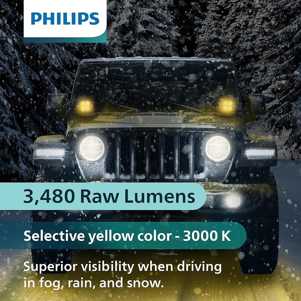 • UNMATCHED BRIGHTNESS: High Power Lumileds LEDs offer 1850 effective lumens with up to 3000 Kelvin bright selective yellow light providing a better option for penetrating through snow, fog, rain, or other low visibility conditions.