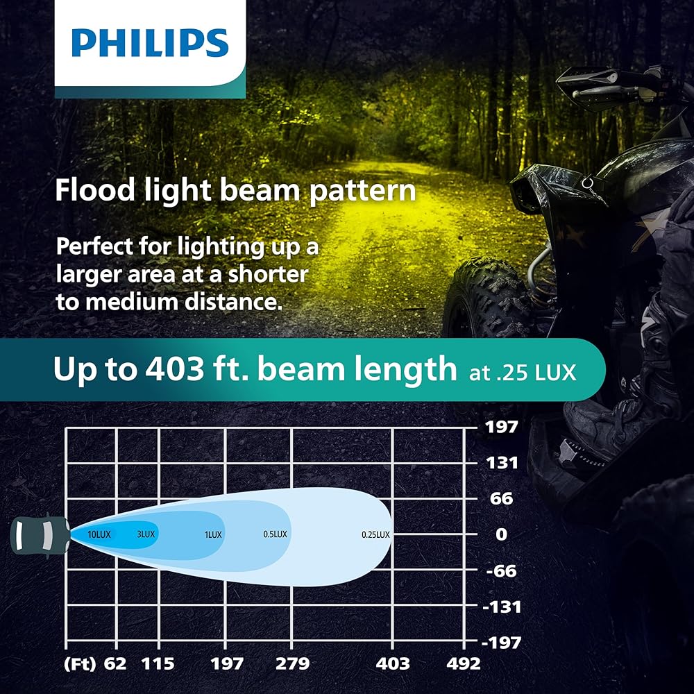 • BEST FLOOD LIGHT: Provides outstanding beam performance with brilliant illumination that extends up to 197 feet. With high lumen output coming from the powerful LEDs, the Ultinon Drive series pod lights emits a wide, dispersed beam of light that's perfect for illuminating large areas. Flood pod lights are ideal for camping, outdoor events, and driving in extreme weather conditions.