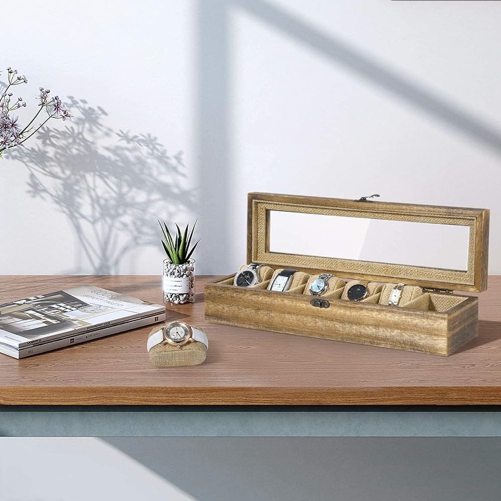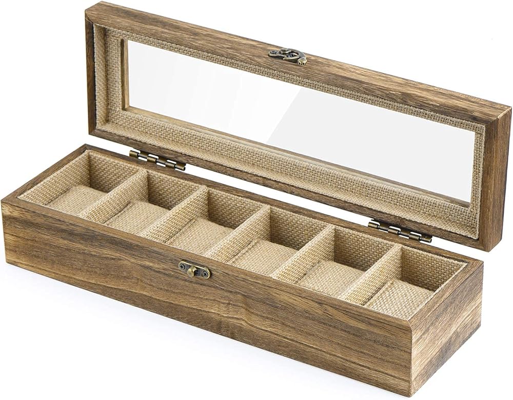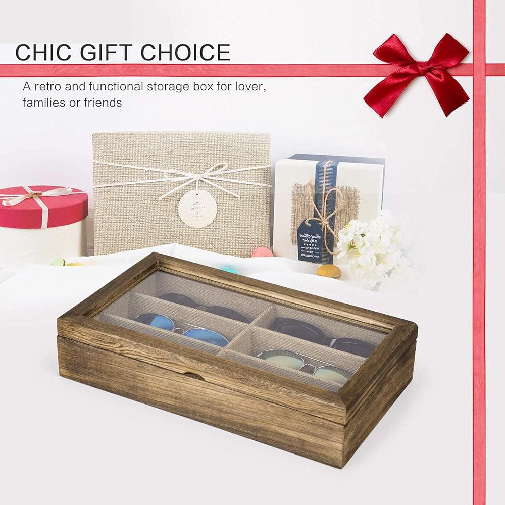حافظة نظارات ريترو: سطح الصندوق مصنوع من الخشب الحقيقي بلمسة نهائية من الشعلة، وتغطي الأغطية الريفية من الداخل جمالًا فريدًا بينما تحمي النظارات من الخدش