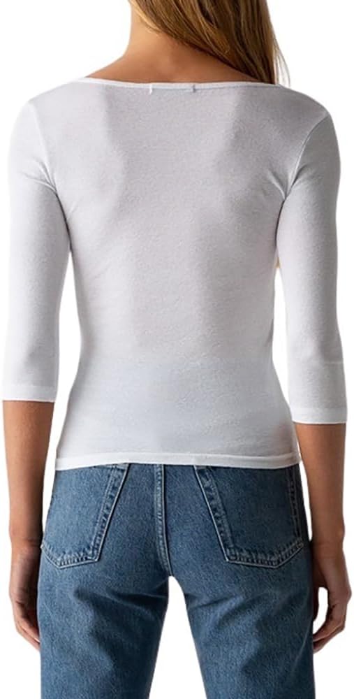 The Michael Stars Women's Angelina 3/4 Sleeve V-Neck Shine T-Shirt is a chic day-to-night essential crafted from Michael Stars' iconic shine fabric. The subtle sheen adds a touch of sophistication, making this top perfect for dressing up or down. With a delicate V-neckline and 3/4 sleeves, this fitted t-shirt offers a flattering and elegant silhouette that pairs effortlessly with a midi skirt or tailored pants.