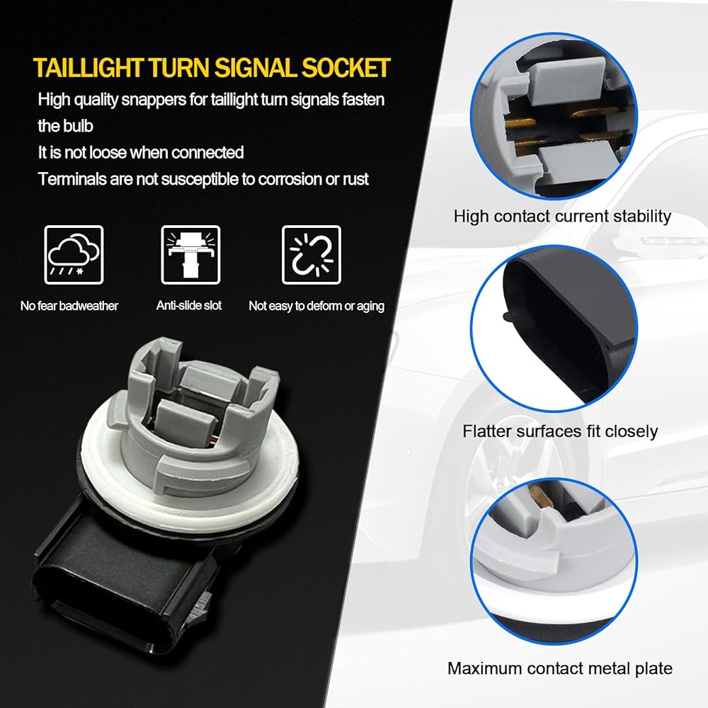 Premium Material: The turn signal light sockets are made of high-quality material to firmly fix the bulb, fully contact with the bulb base. The tail light turn signal lights's high quality clasps can hold the bulb tight does not loosen when connected, the terminal is not easy corrosion or rust.
