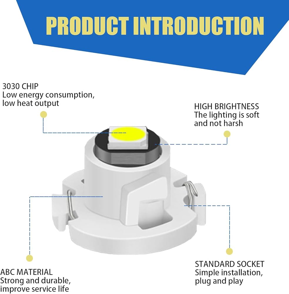 Product Specifications: The model of this car instrument light is T4.2. It uses 3030 smart chip, which can respond and start quickly without waiting time. After purchase, you will receive 10 x car instrument light replacement parts, enough to meet your daily use needs.