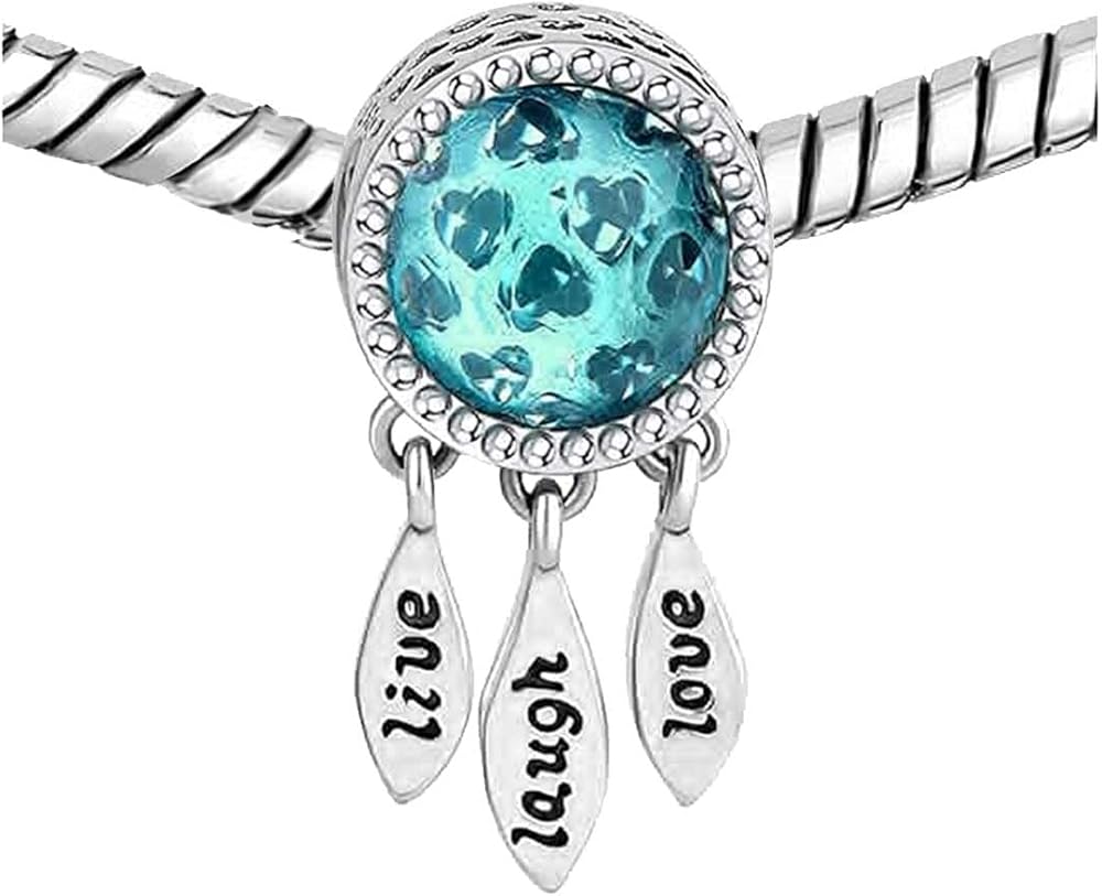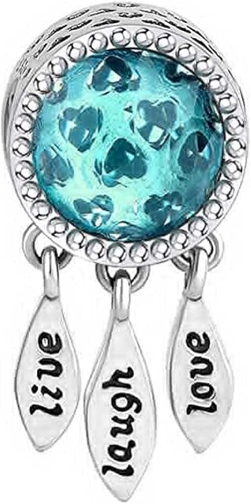 KunBead Women Heart Live Laugh Love Blue Birthstone قلادة سحر متوافقة مع أساور Pandora Charm