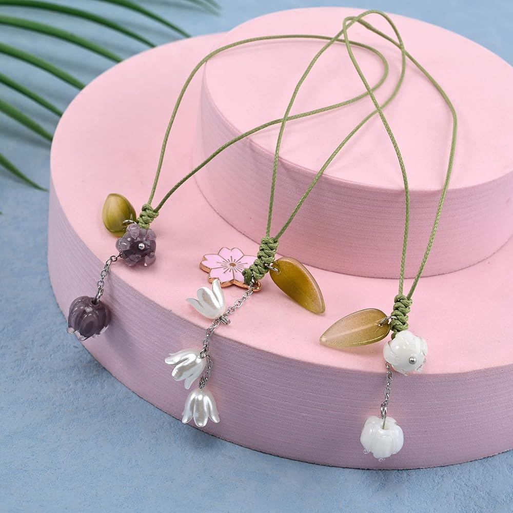 IUAQDP 3 قطع زهرة الهاتف الخليوي سحر حزام، لطيف الخزامى شنقا قلادة، سلسلة المفاتيح الأزهار زخرفة سلسلة للهاتف المحمول سيارة مفتاح محفظة حقيبة الظهر محفظة سماعة الرأس الديكور النساء الفتيات