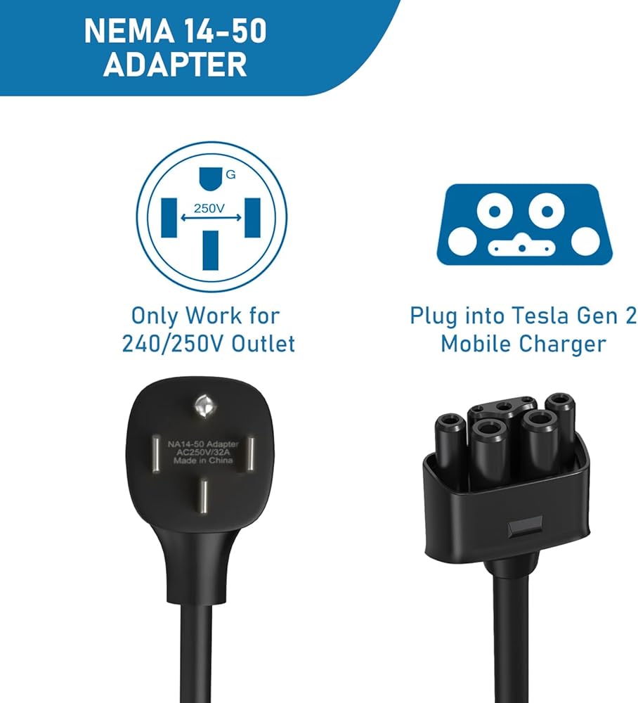 • محول NEMA 14-50 لشاحن الهاتف المحمول Tesla Gen 2
