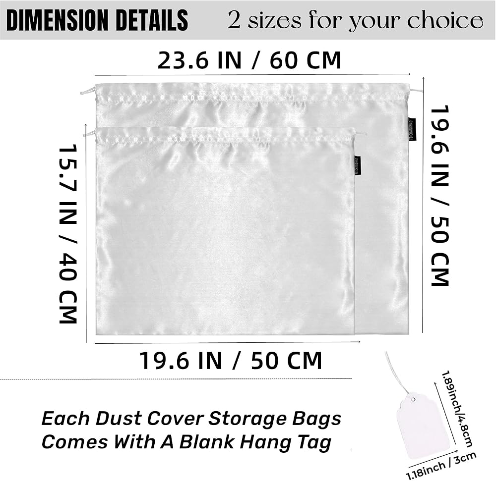 【حقيبة غبار كافية】: قم بترقية طريقة التخزين الخاصة بك مع هذه المجموعة المكونة من 20 كيس تخزين محمول يدويًا بغطاء غبار، تحتوي حقيبة الغبار المحفظة على مقاسين 23.6 * 19.6 بوصة و19.6 * 15.7 بوصة لتختار منها، بما يكفي لتخزين مجموعة متنوعة من الأغراض. عناصر الحياة، وتلبية احتياجات استخدامك اليومي، كما يمكنك مشاركتها مع أصدقائك. (كل حقيبة فريدة من نوعها مصنوعة يدويًا وقد تختلف قليلاً في الحجم.)