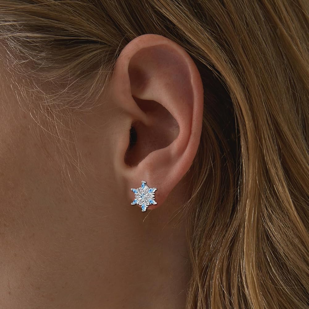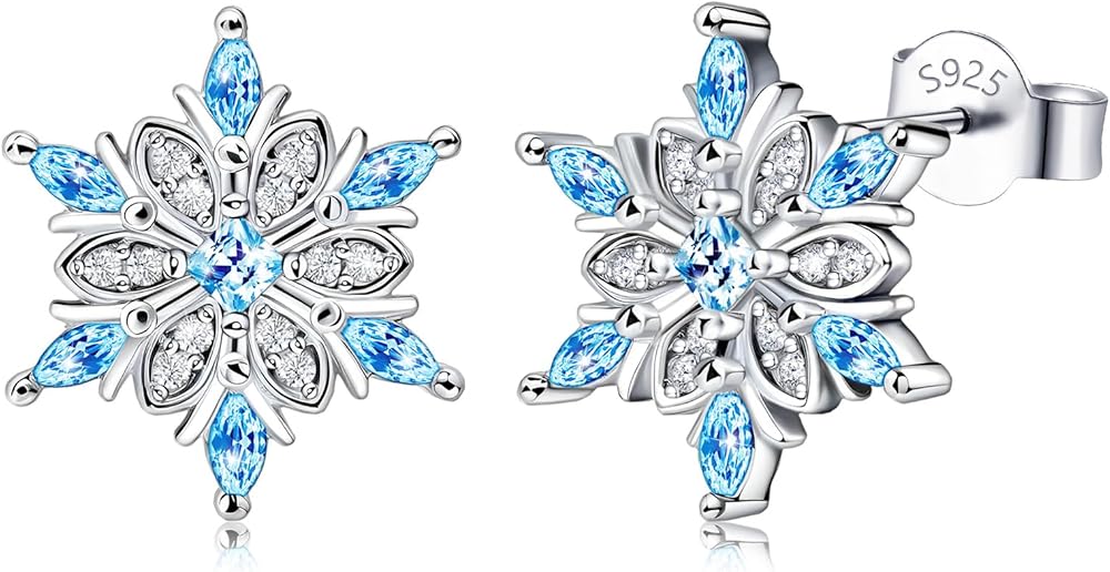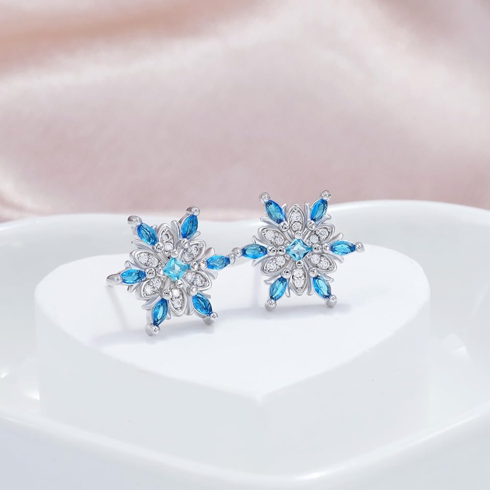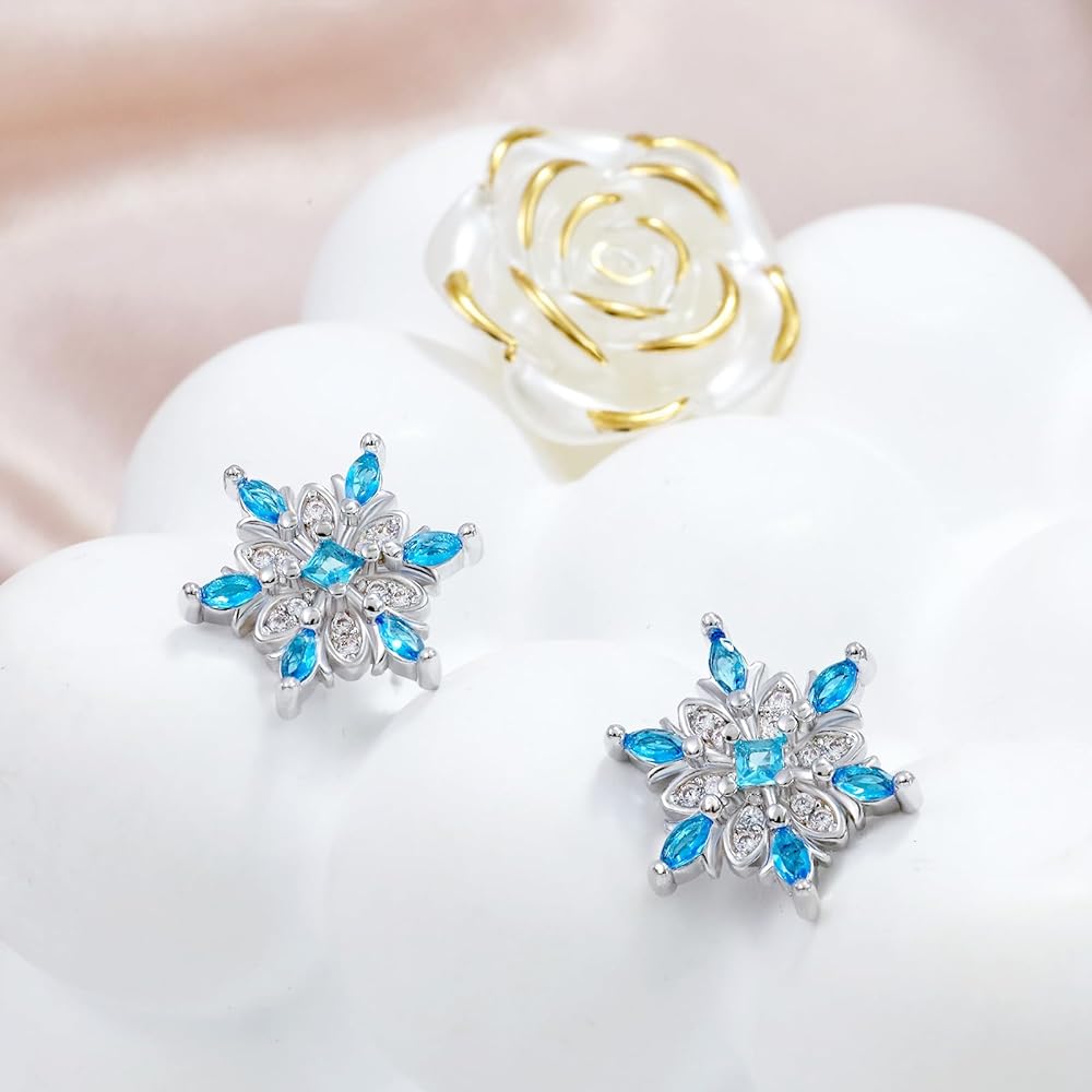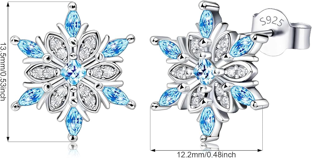 ✦ لمن تحب ✦ هدية مثالية لمن تحب. حلق ندفة الثلج من الفضة الإسترلينية مصنوع من تشيكوسلوفاكيا باللون الأزرق الفاتح مع قرط زركونيا مكعب. يمكن تطبيق القرط الكلاسيكي والمميز لتعديل ملابسك ومكياجك ليظهر أسلوبك وذوقك العصري.