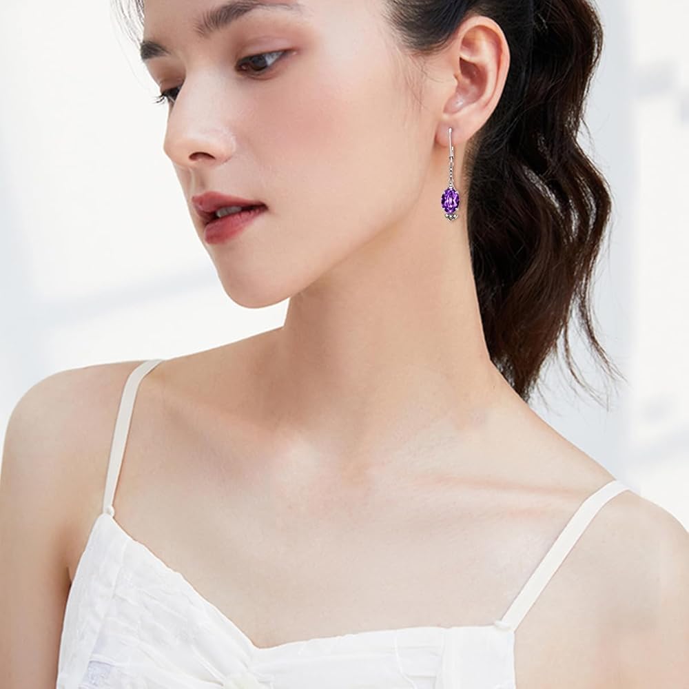 ❤ 【معلومات المقاس】الطول الإجمالي: 1.65 بوصة (42 مم)، مقاس حجر الميلاد: 9 مم. يضمن التصميم الخالد لهذه الأقراط الحفاظ عليها لسنوات قادمة.