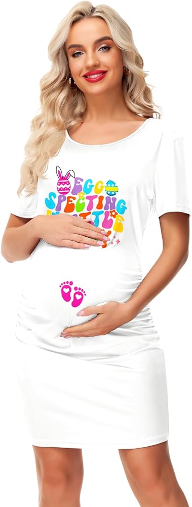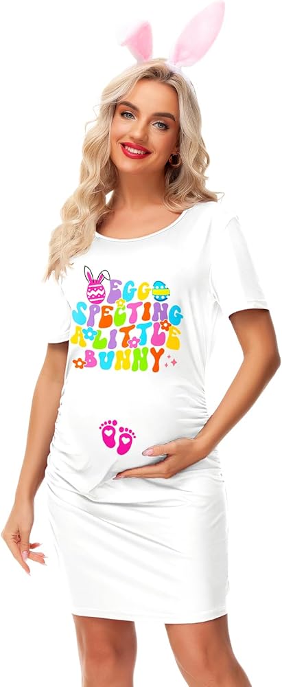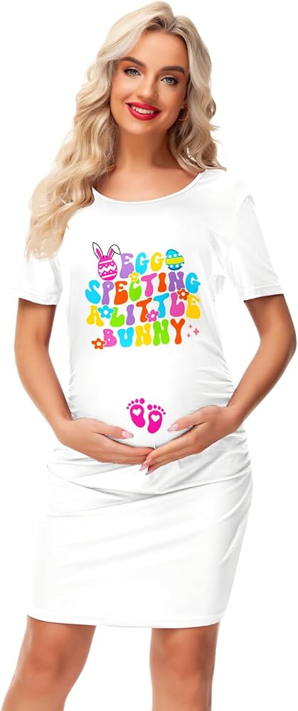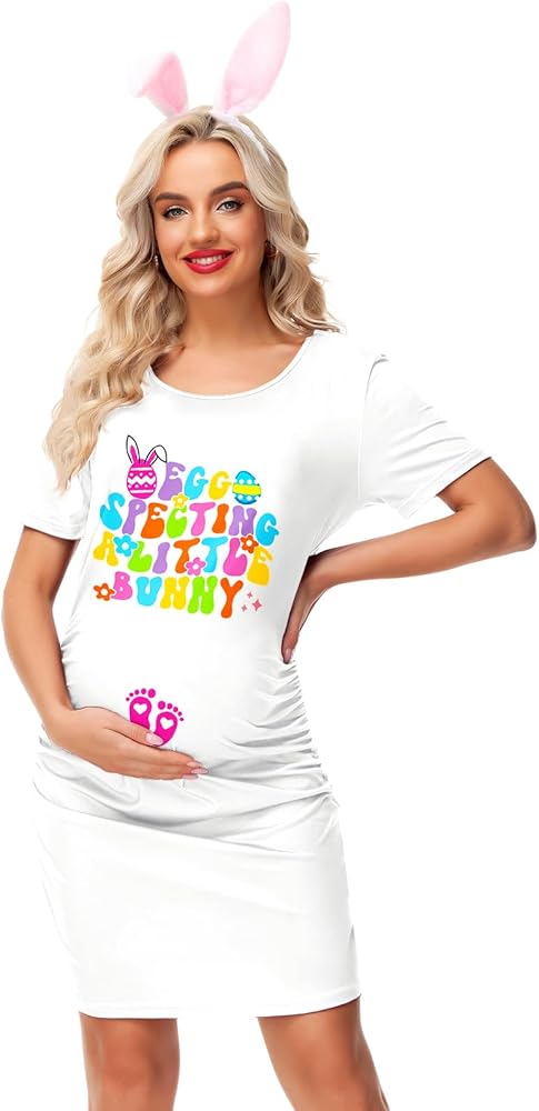 Deerose Womens Easter Day Pregnancy Dresses Egg Bunny Printed Maternity Outfit