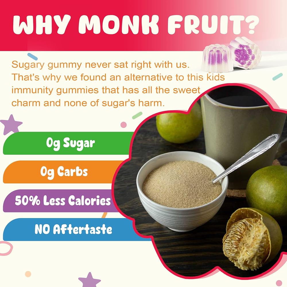 • 👍خالية من السكر والجيلاتين، صُنعت في الولايات المتحدة الأمريكية: تم تحلية حلوى الأطفال هذه بشكل طبيعي بفاكهة الراهب، مما يوفر سعرات حرارية أقل بنسبة 50% من السكر العادي - وهو خيار ممتاز للأطفال الذين قد لا يتحملون كحول السكر مثل الإريثريتول أو الزيليتول. صُنعت العلكة الخاصة بنا بفخر في الولايات المتحدة الأمريكية وتم اختبارها بواسطة طرف ثالث، وهي غير معدلة وراثيًا وخالية من المواد الحافظة والغلوتين والقمح ومنتجات الألبان والبيض والمحار وفول الصويا والجيلاتين. إذا كانت لديك أي أسئلة، فيُرجى التواصل معنا - رضاك ​​هو أولويتنا القصوى!