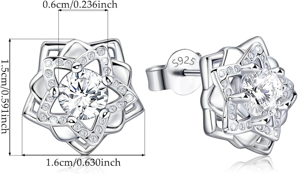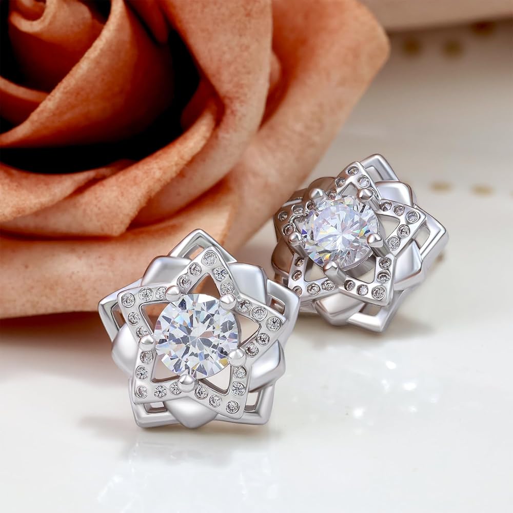 ✦ لمن تحب ✦ هدية مثالية لمن تحب. حلق زهرة الورد من الفضة الإسترلينية مصنوع من تشيكوسلوفاكيا مع حلق زركونيا مكعب. يمكن تطبيق القرط الكلاسيكي والمميز لتعديل ملابسك ومكياجك ليظهر أسلوبك وذوقك العصري.