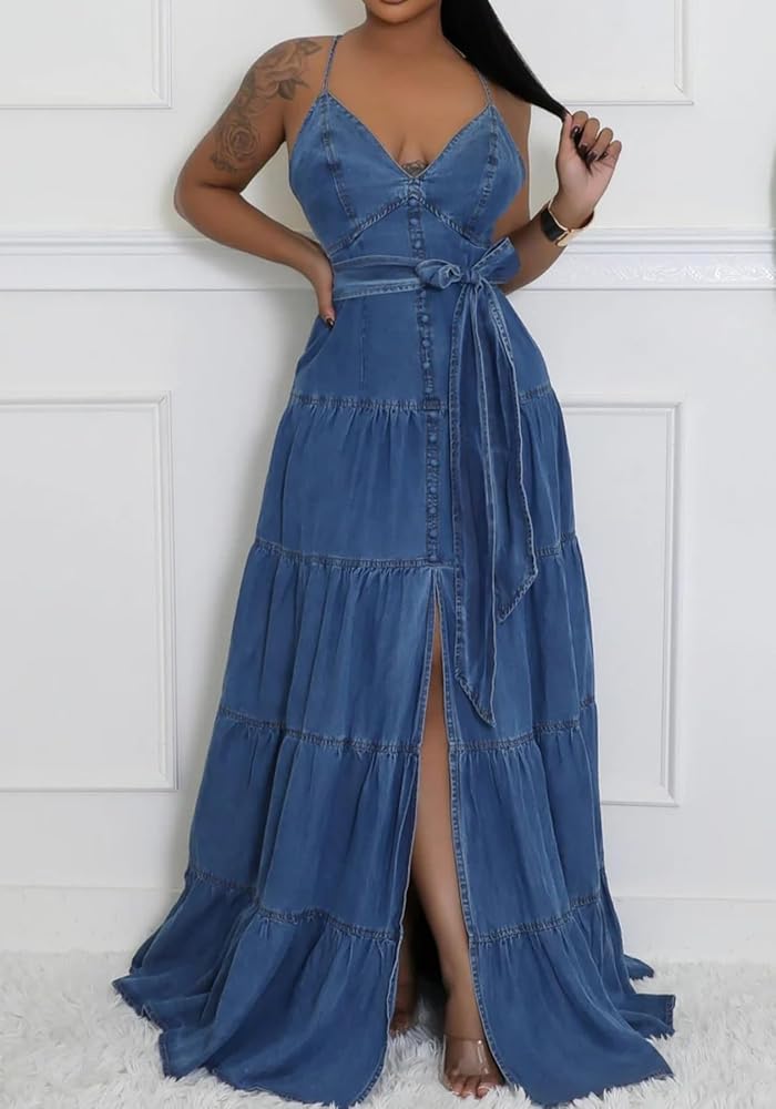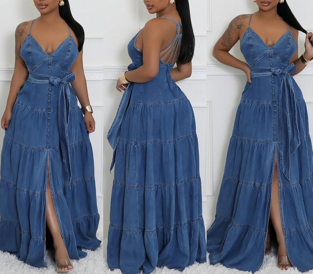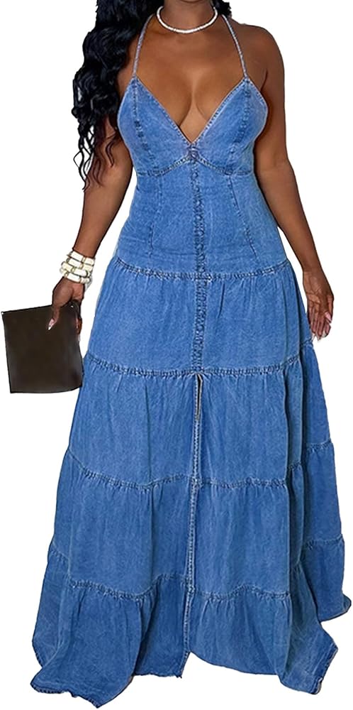 متعدد الاستخدامات: فستان الدنيم الطويل الصيفي النسائي متعدد الاستخدامات ويمكن ارتداؤه في مناسبات مختلفة. ارتديه مع الصنادل والأحذية ذات الكعب العالي والأحذية المسطحة وما إلى ذلك. مناسب للحفلات وملابس الشاطئ أو حتى كخيار أنيق للارتداء اليومي