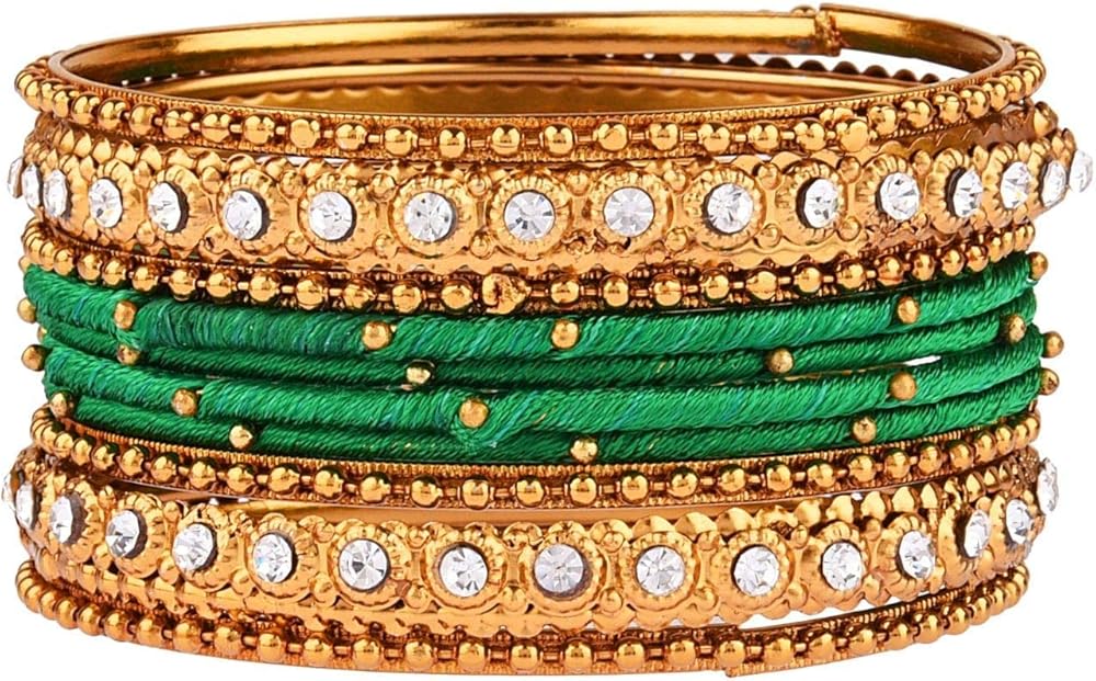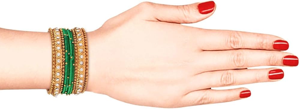 This exquisite and elegant gold plated silk thread coating antique bangle bracelet adds a traditional touch to your ensembles. Perfect for ethnic and traditional wear. it will not lose its shine over a long period of time. OCCASSION: this includes an insight of crude ethnic excellence for all type of traditional look. Wear this with your gorgeous traditional dress on any wedding, party, engagement, ring ceremony, anniversary or any festive or special occasion. A classic fusion of exquisite craftsmanship and feminine elegance. Perfect Gift For Any Occasion for yourself or your loved ones. Ideal Valentine, Thanks giving, Mother's Day, Chrismas, Anniversary gift.CARE INSTRUCTIONS: Avoid contact with heat, chemicals and water. Clean with dry cotton cloth. Pack in an air tight container/ pouch after use. It is advisable to wear the jewellery after makeup.