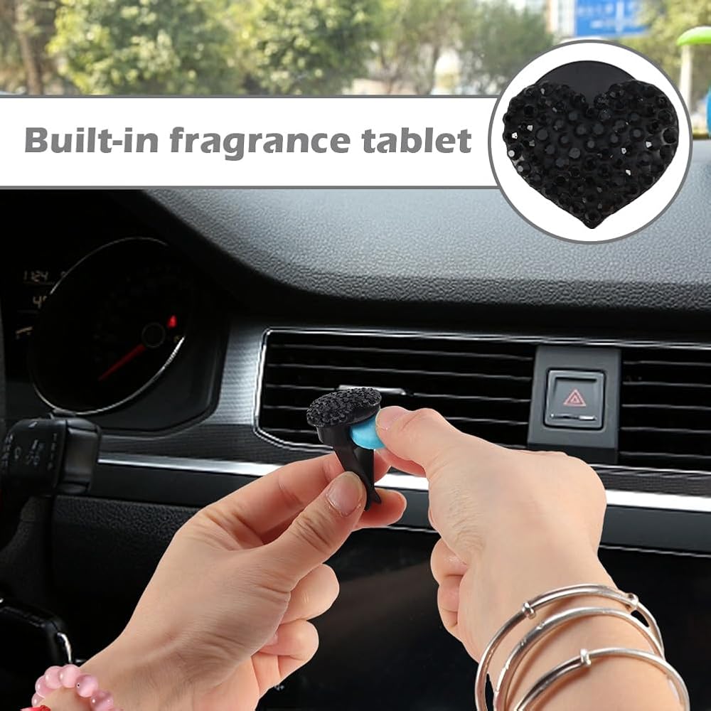 • 【EYE-CATCHING DECORATION】These car vent clips are designed with shiny delicate rhinestone diamonds. They are in the shape of a heart, beautiful and lovely in the sunlight, and very suitable for decorating the interior of your car.