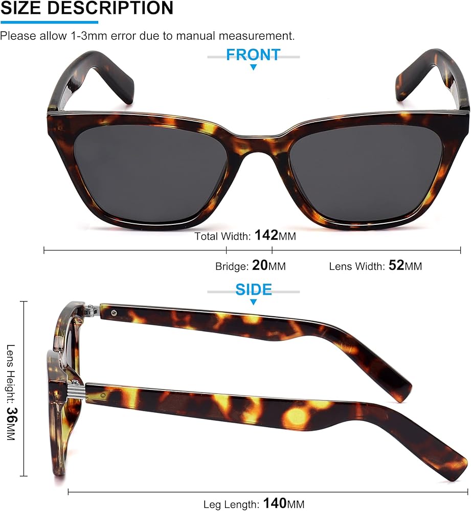 • ☼إطار عالي الجودة - هذه الإطارات مصنوعة من مادة بلاستيكية خاصة، فهي خفيفة الوزن وتتحمل الاستخدام المتكرر. تضمن المفصلات المعدنية الرائعة بقاء الأذرع ثابتة ومتينة في الاستخدام. تمنح عملية الإنتاج الدقيقة النظارات ملمسًا راقيًا.