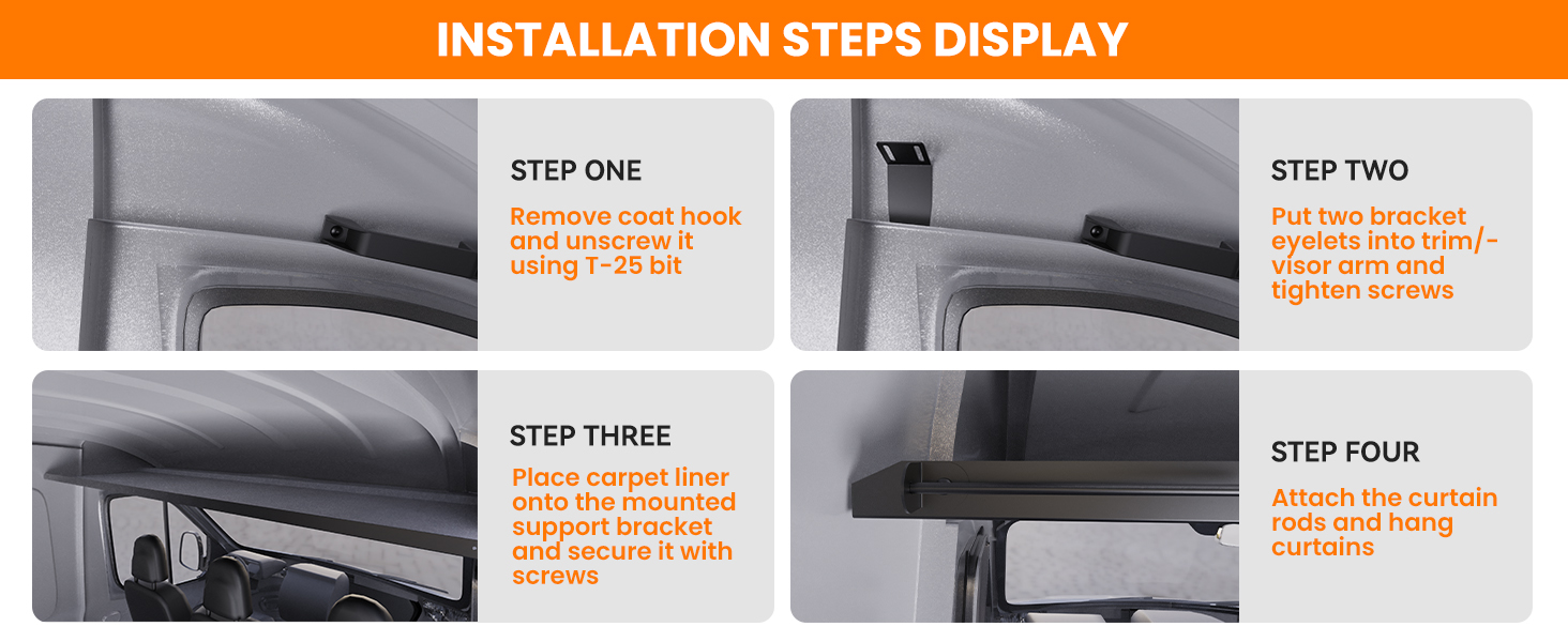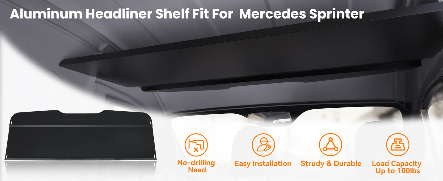 لا حاجة للحفر: تم تصميم أرفف بطانة السقف Sprinter لتتناسب مع الزخرفة الداخلية. نحن نقدم جميع أجهزة التثبيت والأقواس، سهلة التركيب