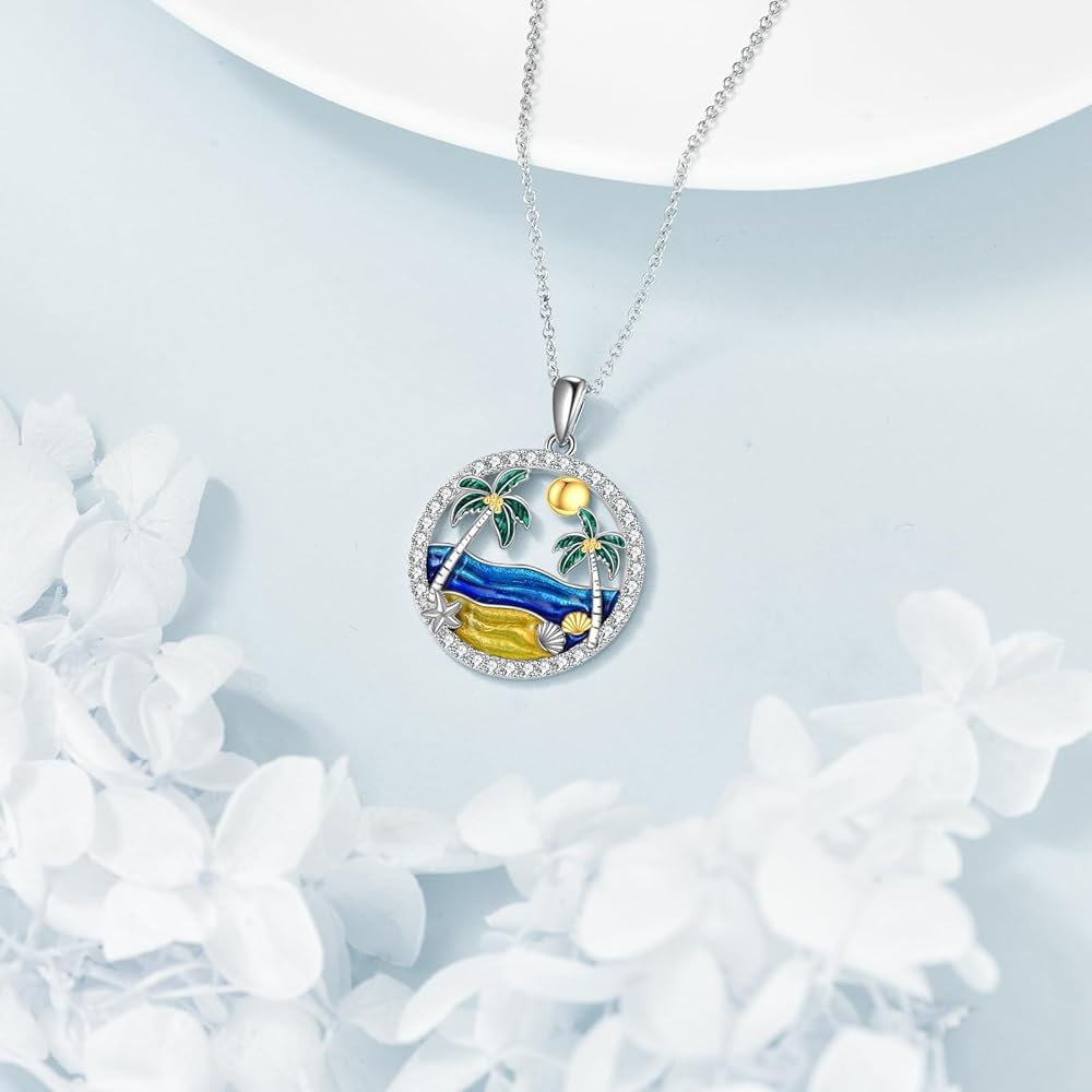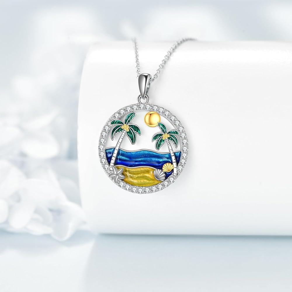 🌟 Material 🌟 : The silver palm tree necklace is made of high-quality 925 sterling silver and plated with a layer of platinum on the surface. A beautiful moonstone is inlaid in the center, which is believed to bring good luck and spiritual tranquility.