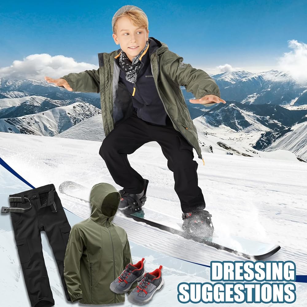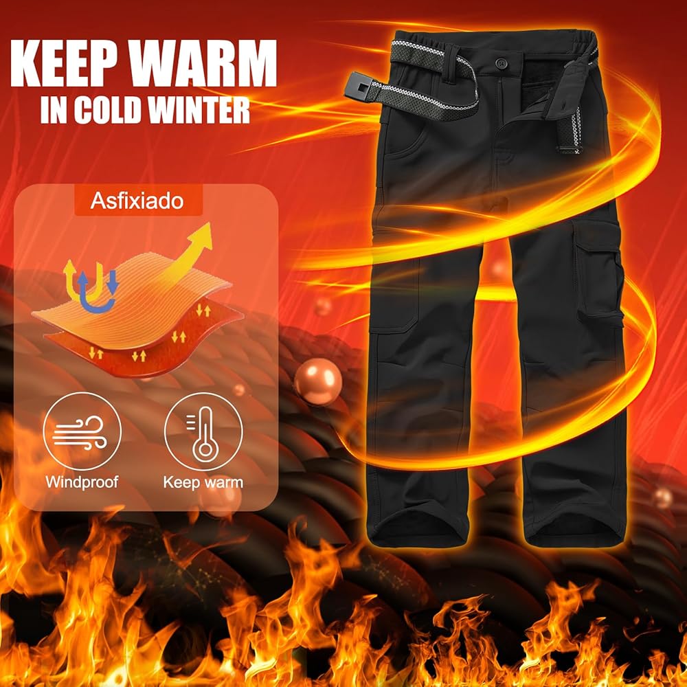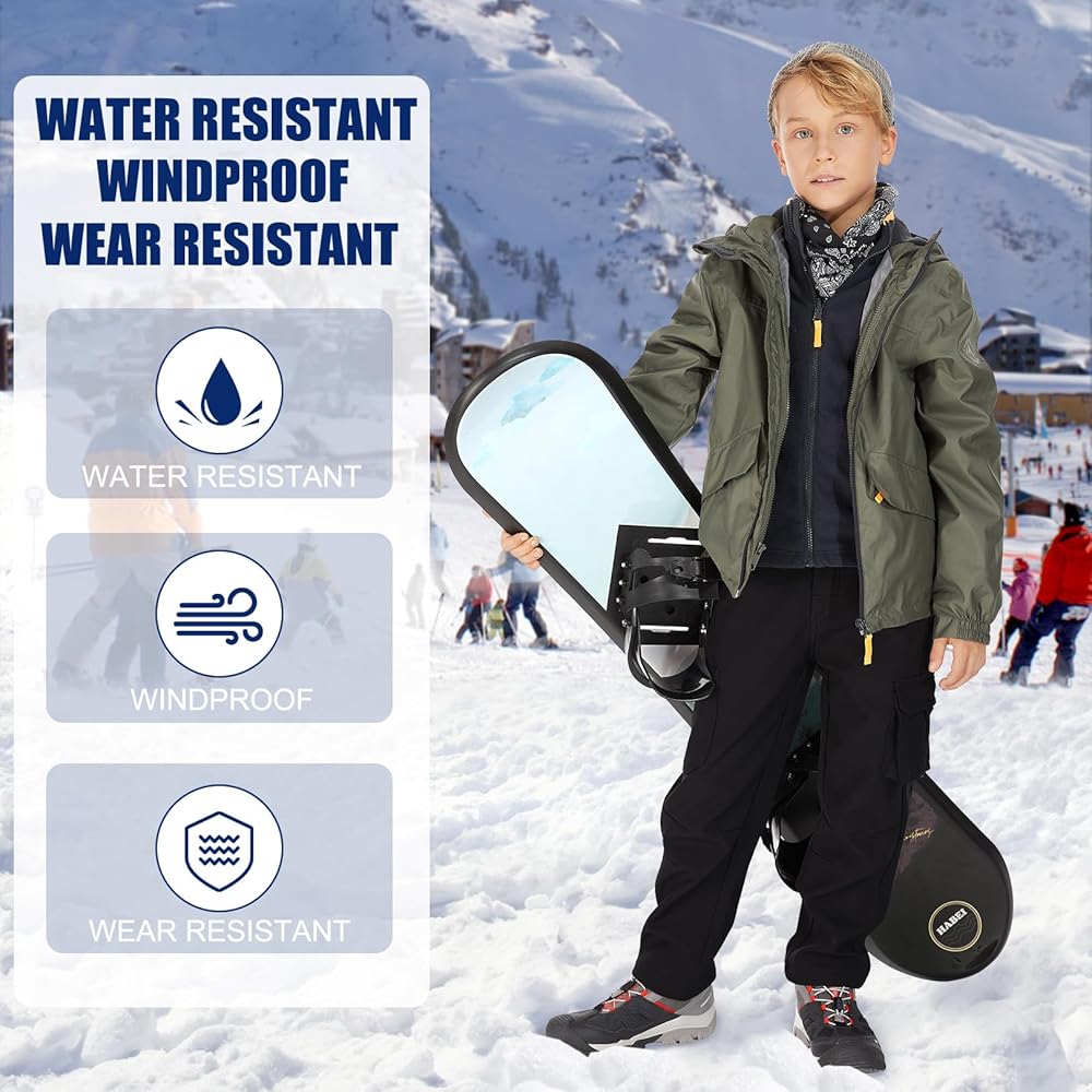 سراويل المشي لمسافات طويلة الشتوية المبطنة بالصوف للأطفال خفيفة الوزن ومقاومة للرياح، سراويل المشي لمسافات طويلة للأولاد مصممة لحرية الحركة والمتانة في الهواء الطلق.