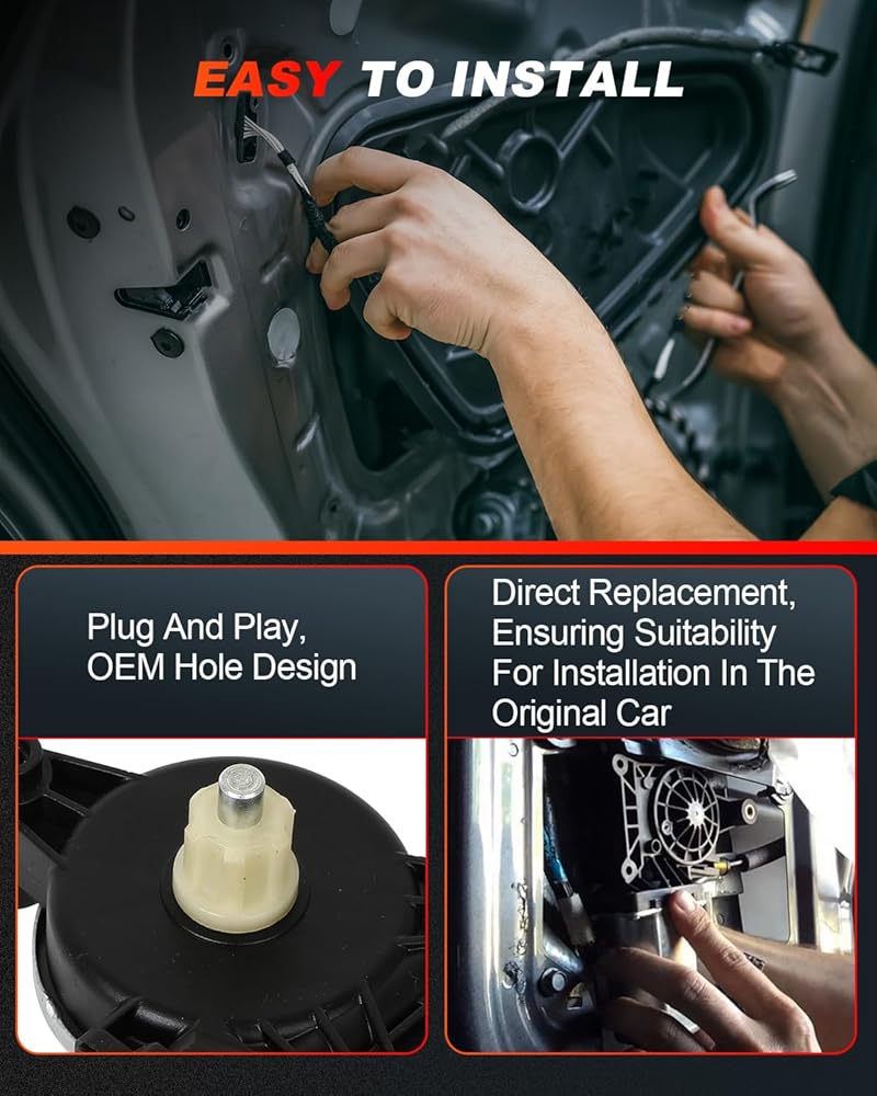 تركيب سهل - يعتمد محرك رافع النافذة هذا على تصميم فتحة OEM، والتوصيل والتشغيل. فتحة التثبيت تناسب الطراز الأصلي ويمكن استبدالها مباشرة دون تعديل السيارة.