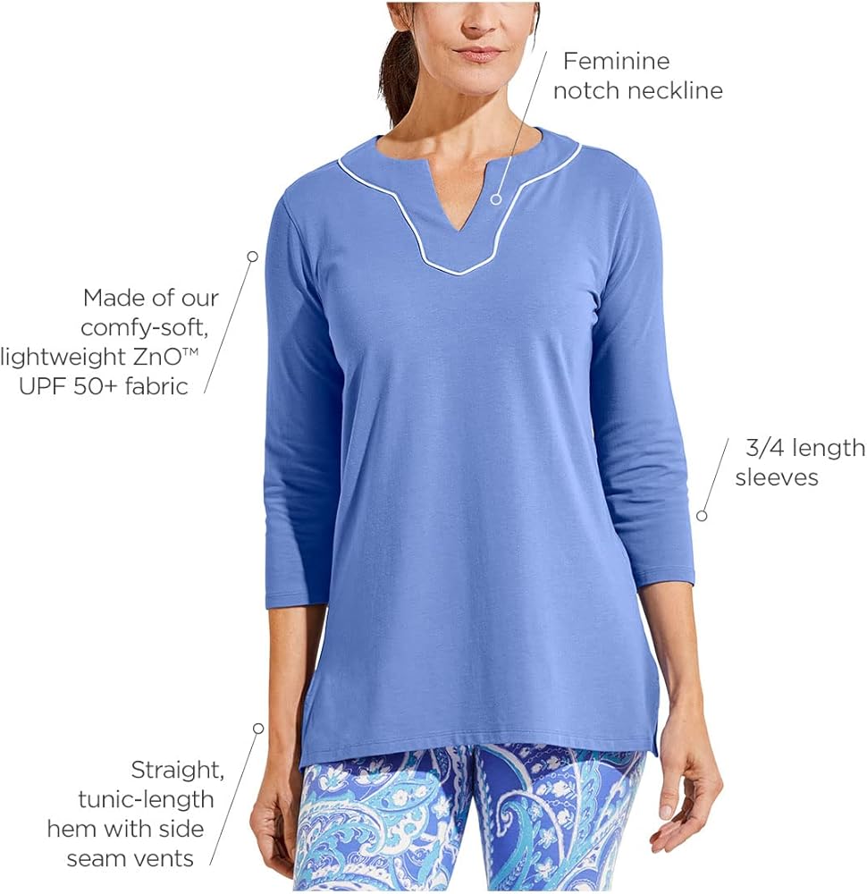 Inspired by our best-selling tunic top and dress, this technically elegant Women's tunic features solid colors with a closed ¾ sleeve for more sun protection. Pair this timeless silhouette with any of our sun-smart leggings or pants for true UPF 50+ from top to bottom!