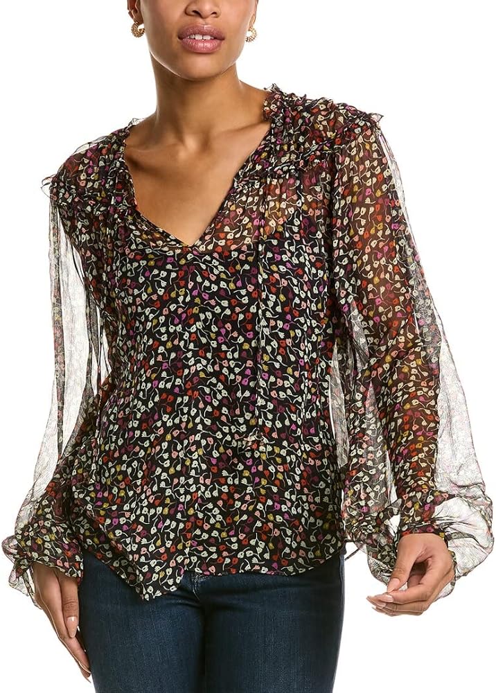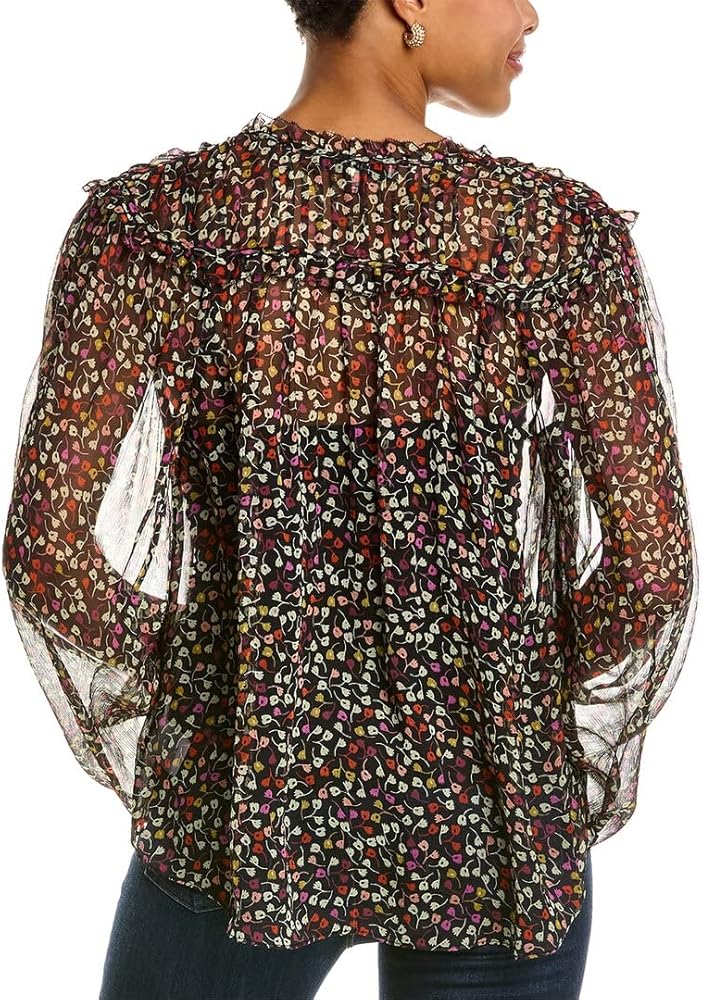 The Epworth is semi sheer and slightly adventurous with its lively pattern and romantic sleeves. Crafted in 100% silk, this blouse doesn't go unnoticed with the ruffled detail around the neckline and relaxed, effortless silhouette.