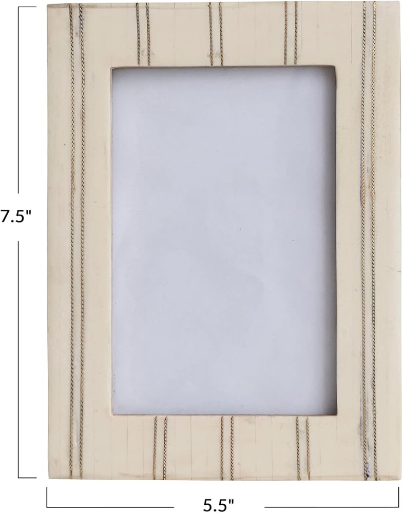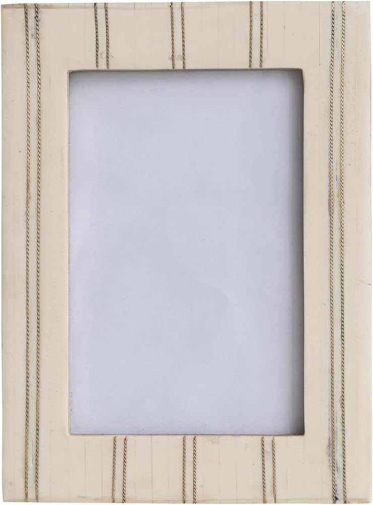 This farmhouse-inspired photo frame features a classic, pin stripe design