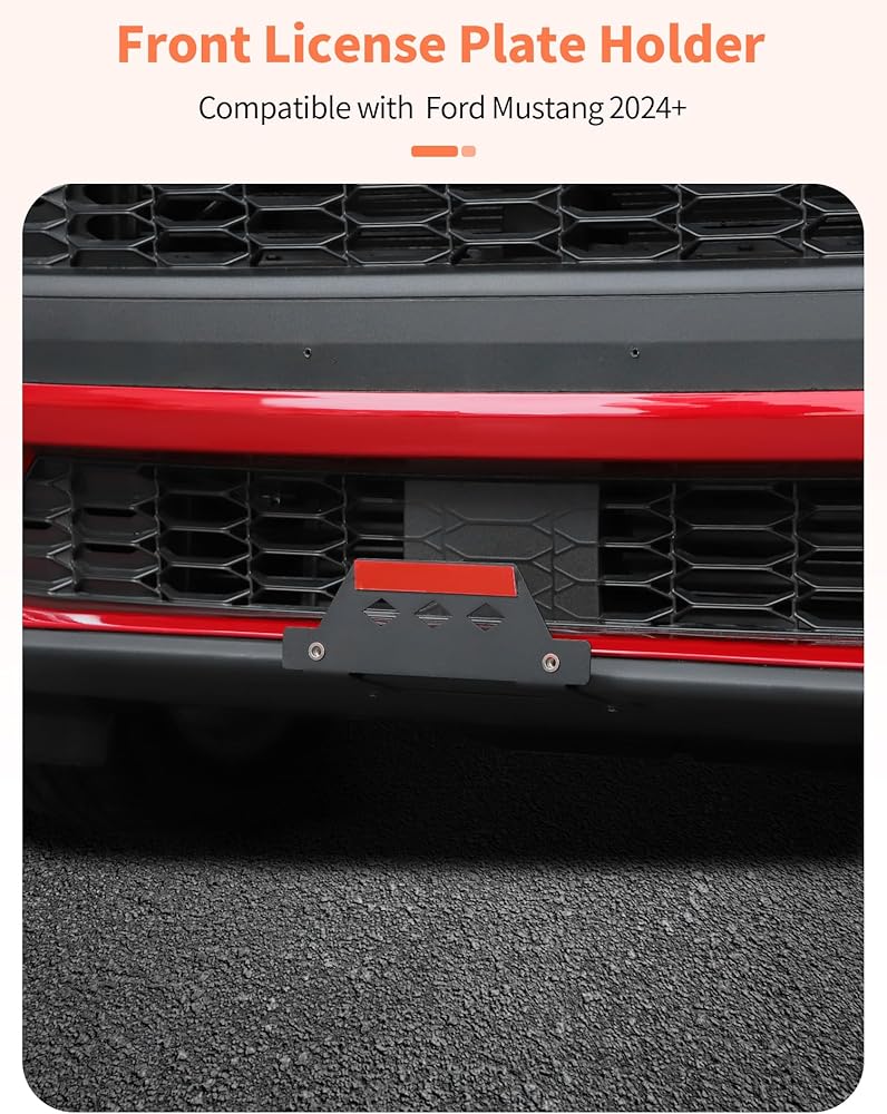 Model: Front License Plate Frame Compatible with Ford Mustang 2024+.
