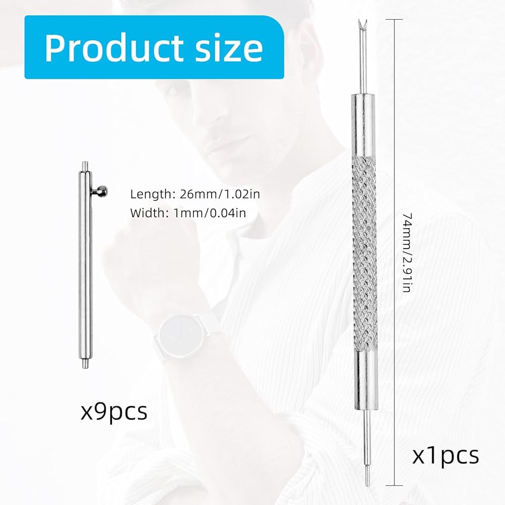 【Complete Watch Band Tool Kit】 This 11-piece set of 26mm Quick Release Spring Bars is designed for watch strap replacement, ensuring a seamless and easy process. Made from stainless steel, these watch pins are built to last, providing a reliable solution for watch repairs and maintenance.
