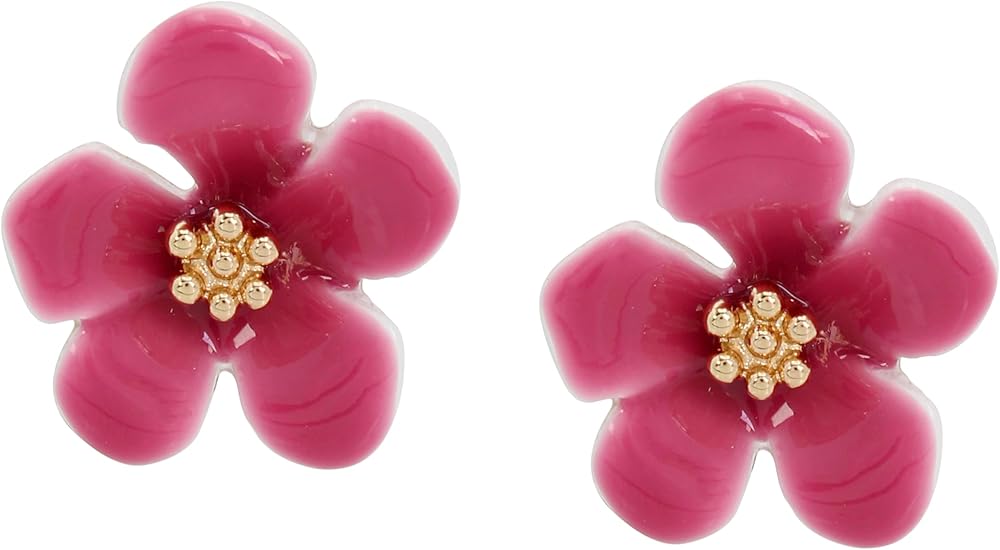 Vibrant tropical flower stud earrings is the perfect pop of color for everyday. Earrings have a post back closure. Made from metal and enamel.