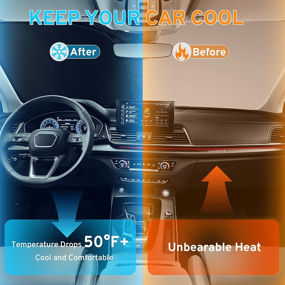【تصميم خاص لشركة Hyundai】: تم تصميم مظلة الشمس للزجاج الأمامي خصيصًا لشركة Hyundai Palisade، وتتميز بحلقات فولاذية معززة لملاءمة دقيقة وآمنة لا تتطلب أكواب شفط. على عكس واقيات الحرارة الأخرى في السيارة، لن يتدلى أو ينهار، مما يضمن أنه مناسب تمامًا لسيارة Hyundai Palisade (2020-2024 2025).