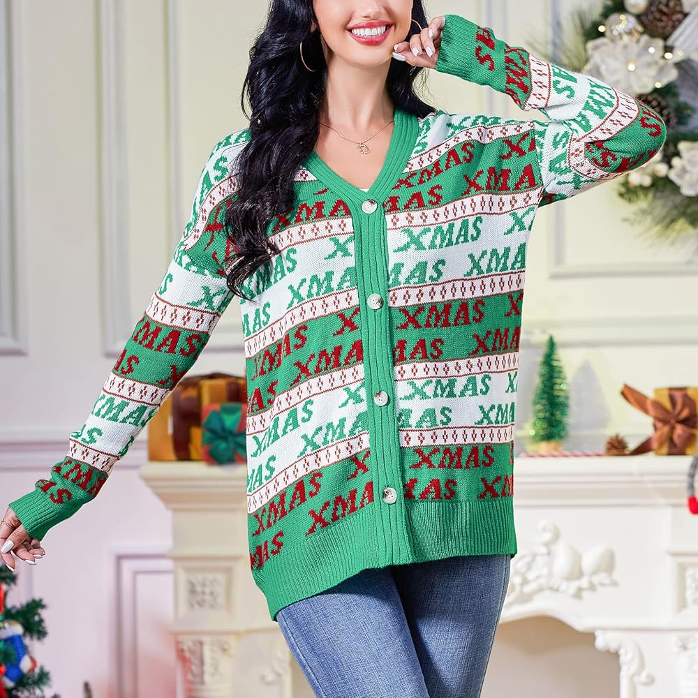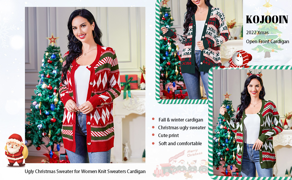 Fabric: Women's Christmas knitted sweater cardigan is made of acrylic. Soft knitted fabric gives you a warm and comfortable feeling.