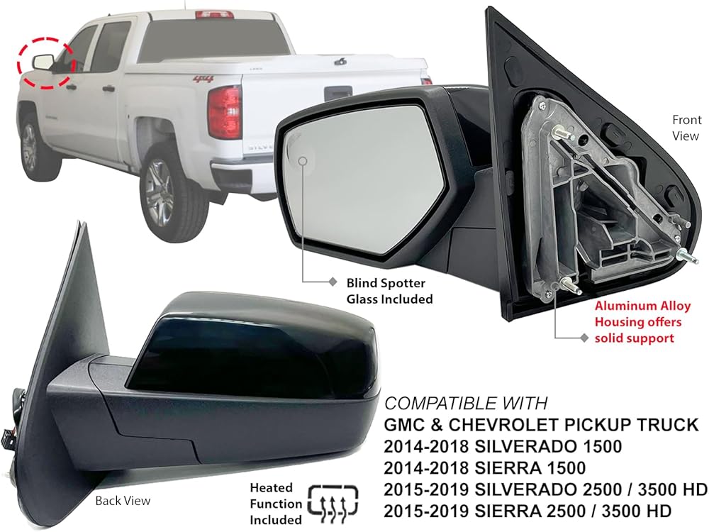 المرآة الخارجية للاستبدال APA تناسب 2014-2019 Silverado Sierra GM Pickup Truck Power مسخن مع سائق غطاء زجاجي من الزجاج إلى الجانب الأيسر 20979673 GM1320481