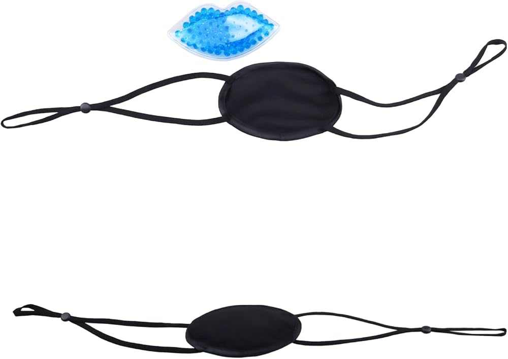 عبوة من قطعتين من ثلج الشفاه مع حزام للأذن، وسادة جل لتبريد الشفاه بدون استخدام اليدين، ضغط ساخن بارد لجراحة الشفاه، وتورم جراحة الأسنان، بعد علاج حشو الشفاه