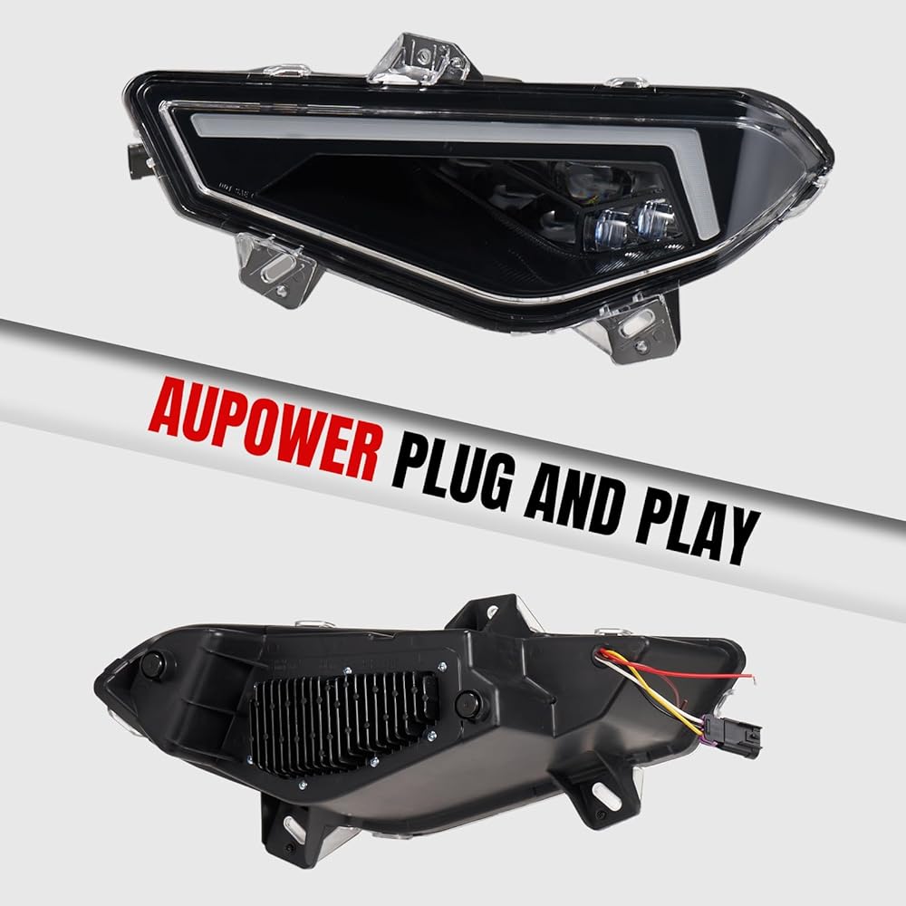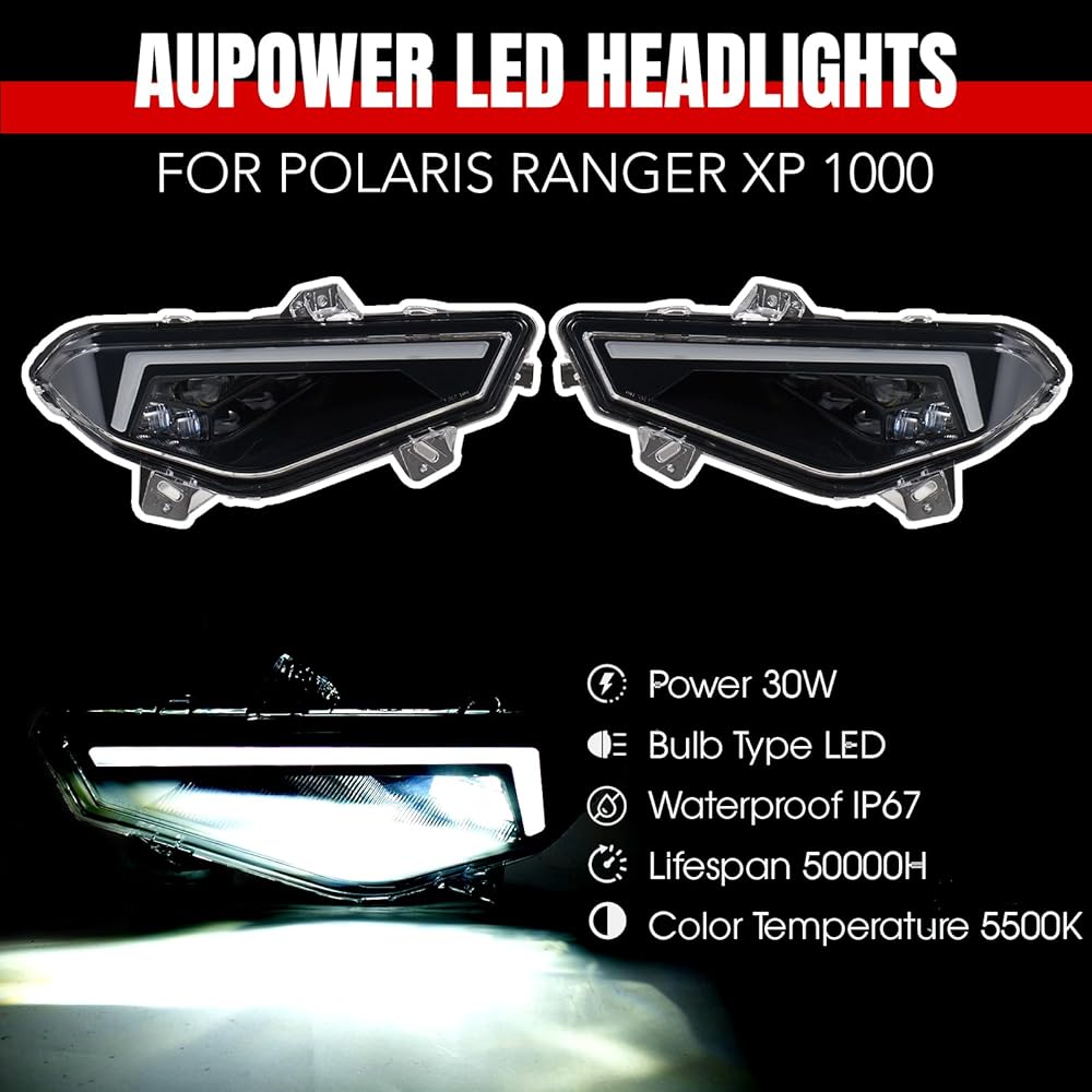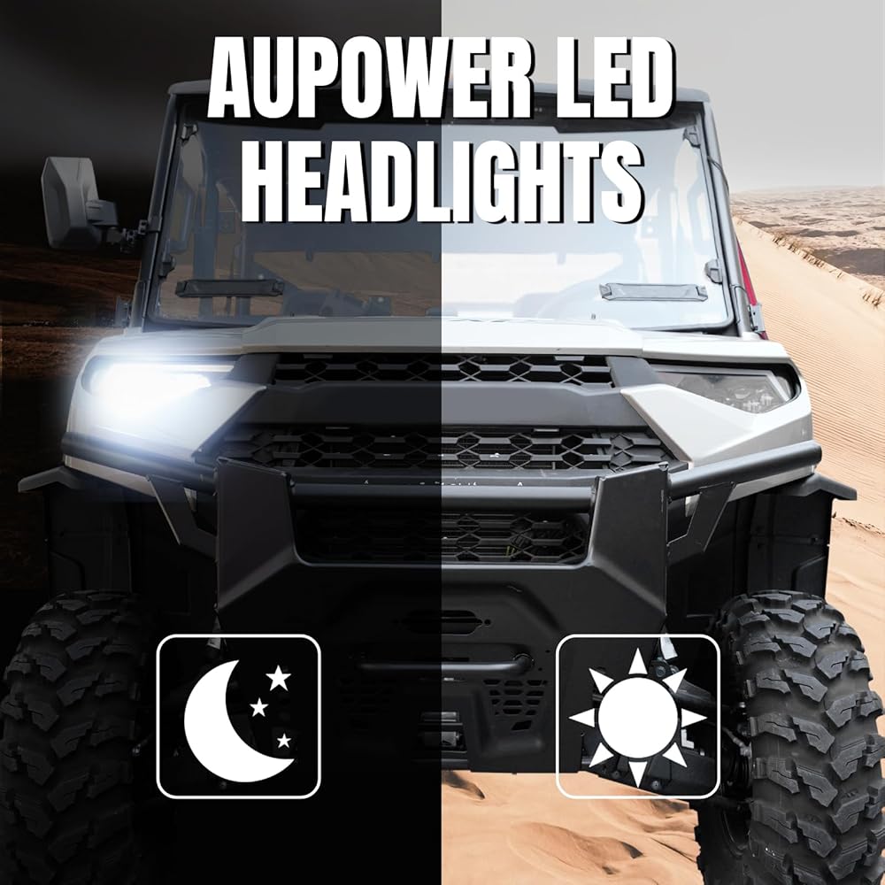 المصابيح الأمامية AUPOWER LED لملحقات Polaris Ranger 1000 XP 2018-2025، مصابيح الرأس لـ Ranger XP 1000/Crew XP 1000 المصابيح الأمامية مع عوارض عالية منخفضة DRL إشارة الانعطاف، استبدال #2889072