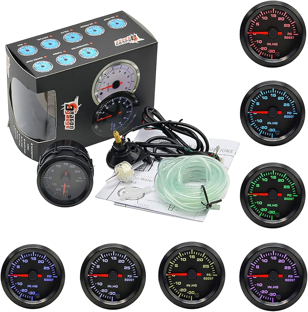 Turbo Boost / مقياس التفريغ يراقب ضغط السيارة ومستويات التعزيز من -30 بوصة زئبقية إلى 30 رطل لكل بوصة مربعة، مع تجنب زيادة التربو التي تسبب مشاكل أخرى محتملة في المحرك.