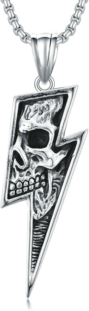 【مريحة في الارتداء】 قلادة جمجمة البرق: 0.96 × 2.44 بوصة. طول سلسلة اللؤلؤ 60.96 سم يناسب محيط رقبة معظم الأشخاص لكل من الرجال والنساء. ملمس ووزن صلب، قلادة جمجمة من الفولاذ المقاوم للصدأ مريحة في الارتداء.
