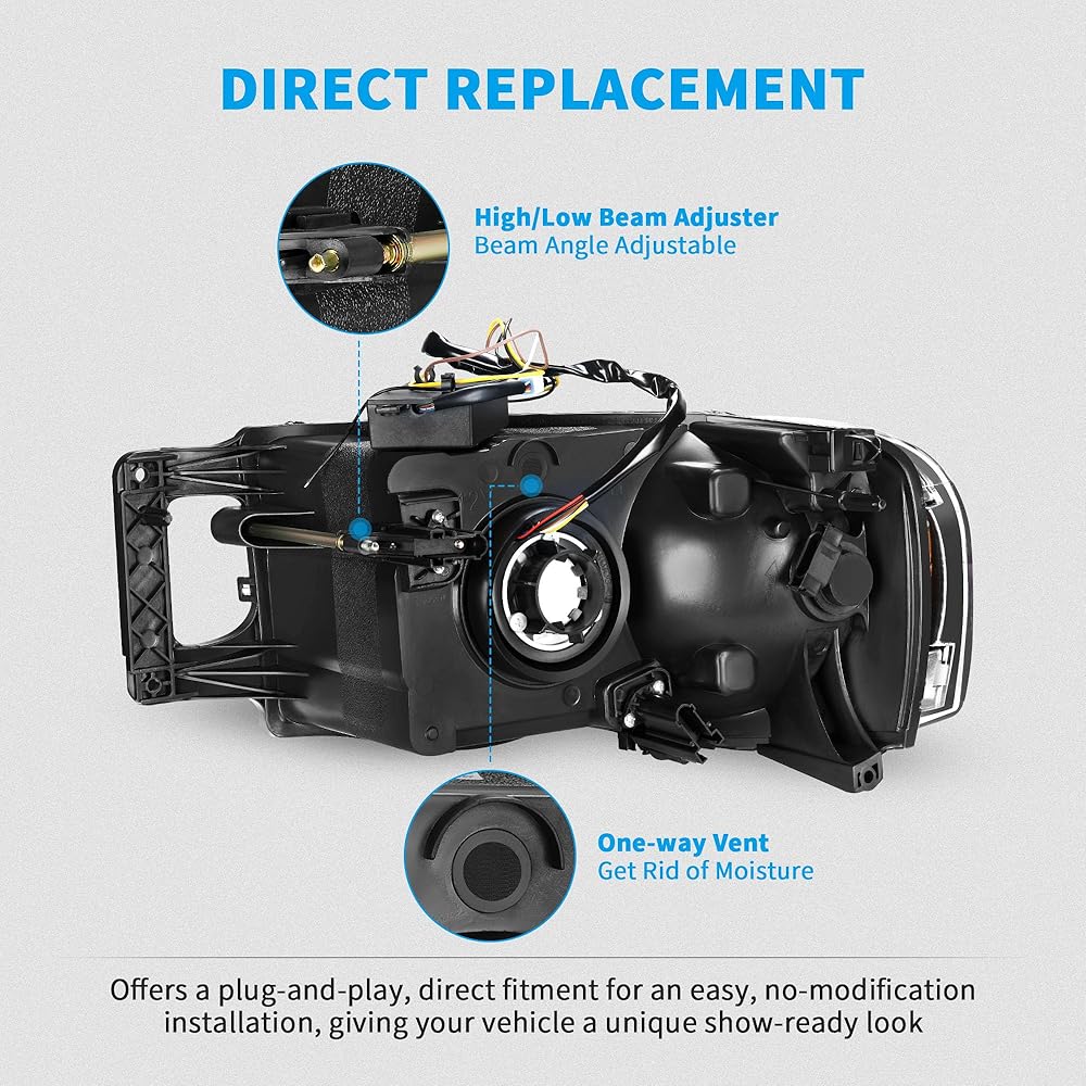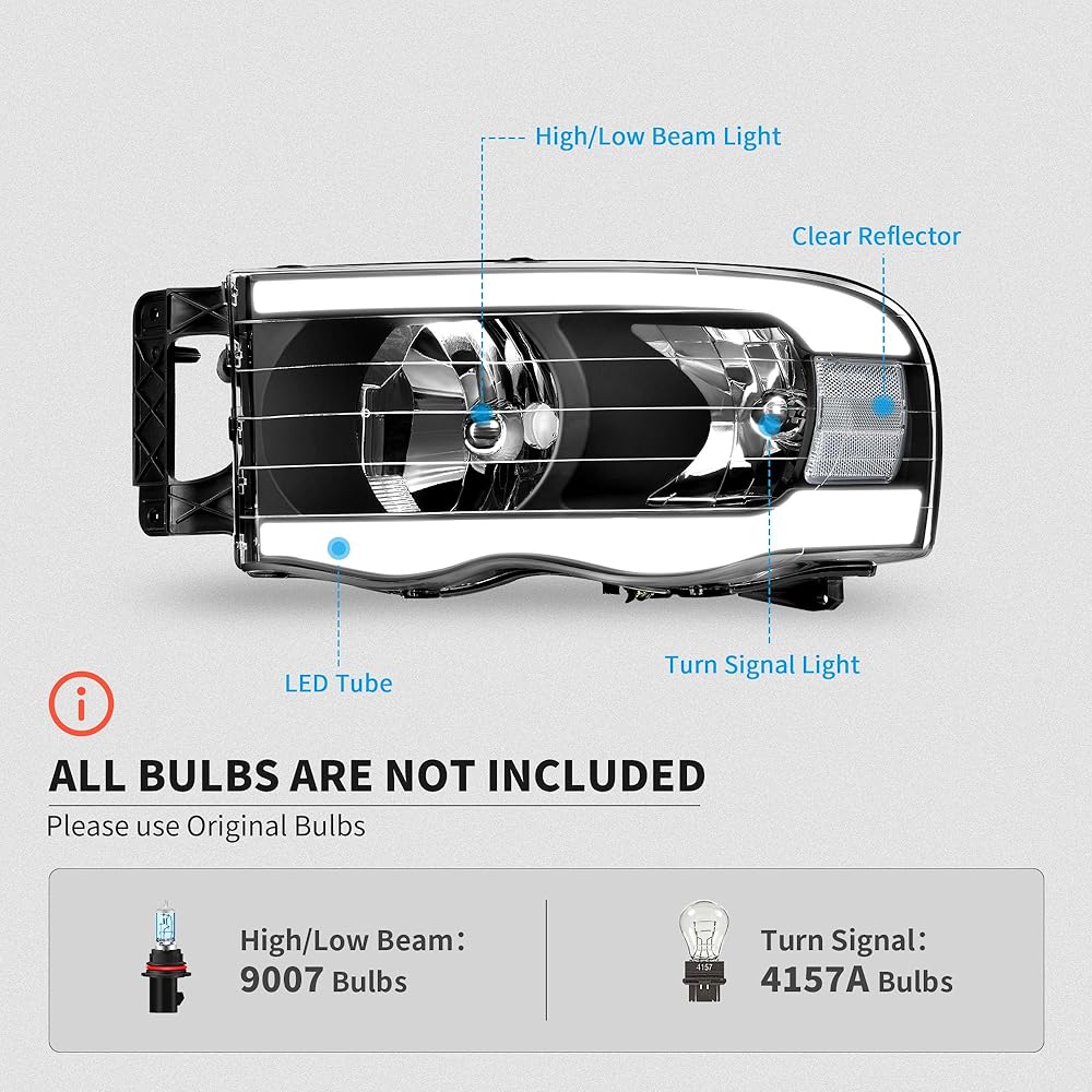 الإعداد: متوافق مع 20006 2007 2008 Dodge Ram 1500، 2006 2007 2008 2009 Dodge Ram 2500 3500. لا تناسب المصابيح الأمامية الأصلية مع ضوء التحديد الجانبي (شريط ملون كهرماني)