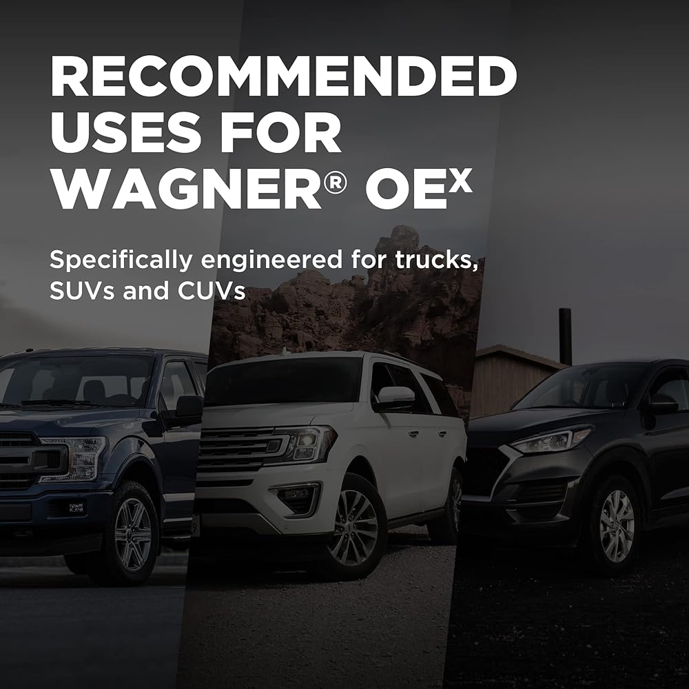 Wagner OEX brake pads provide premium braking performance for trucks, SUVs and CUVs. Featuring a patented, custom shape and slot design for cooler operation, they deliver up to two times longer pad life compared to other Wagner offerings.