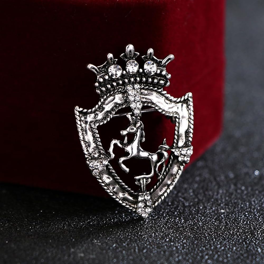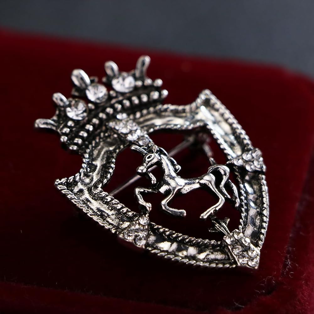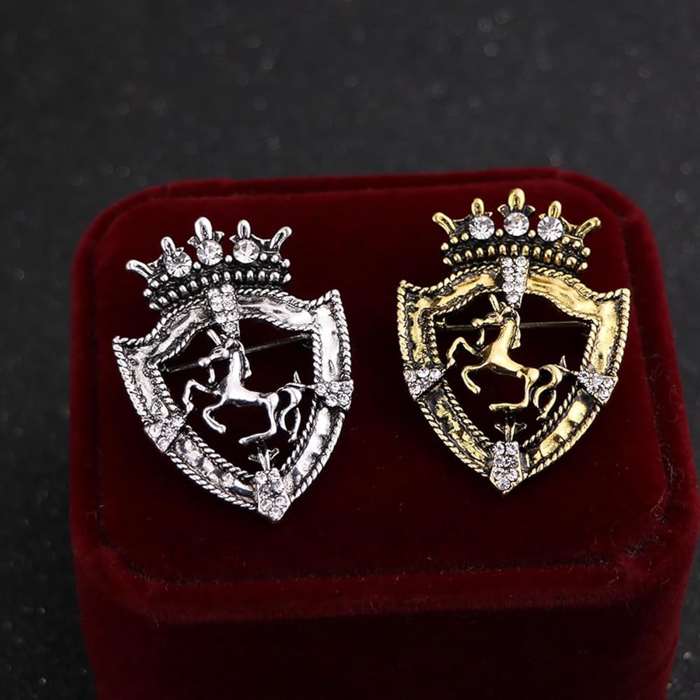 【دبوس حصان عتيق】يحتوي بروش الحصان هذا على بروش يتميز بتصميم مقطوع على شكل حصان وتاج مع أحجار الراين الشفافة. مع التصميم البسيط والأنيق يجعله مناسبًا لكل مناسبة تحضرها. سهل الارتداء ومطابقته مع المجوهرات الأخرى، ويتناسب بشكل جيد مع العديد من الملابس.