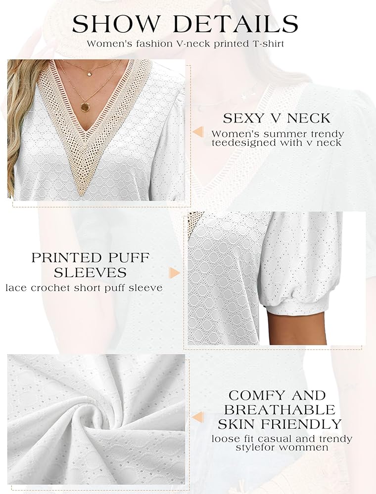 المواد: 95% بوليستر + 5% سباندكس. قمصان صيفية للسيدات كاجوال مصنوعة من مادة ناعمة عالية الجودة، وهي صديقة للبشرة وناعمة ومريحة. القماش جيد التهوية وخفيف الوزن، وقد يكون الموديل الأبيض شفافًا قليلاً، مما لا يؤثر على الشعور الجميل والمريح عند الارتداء.