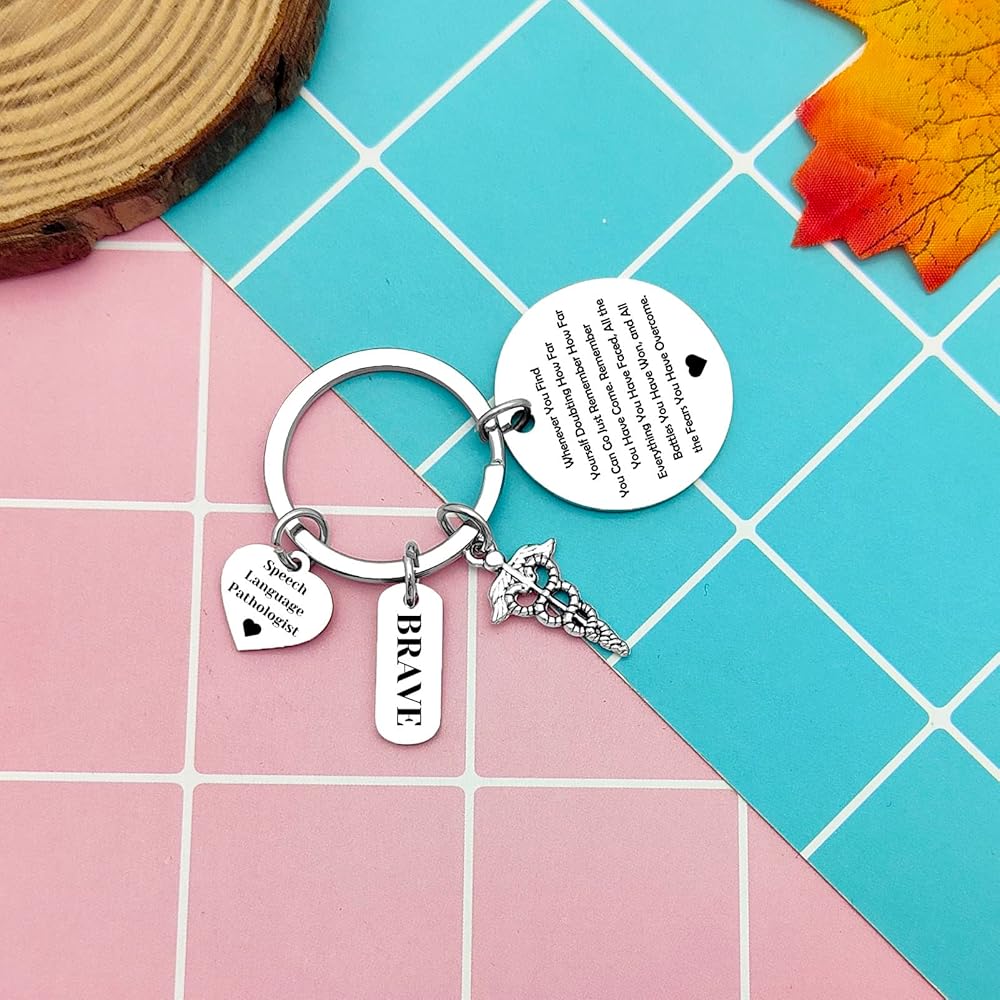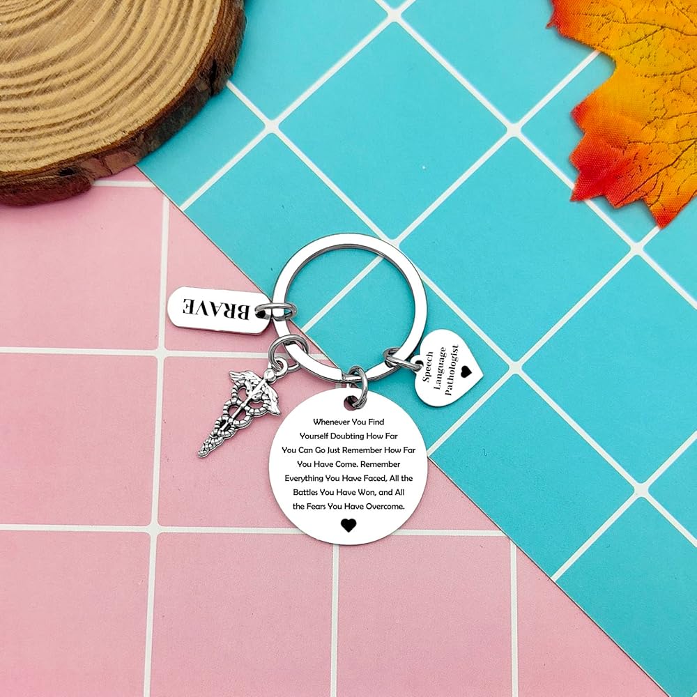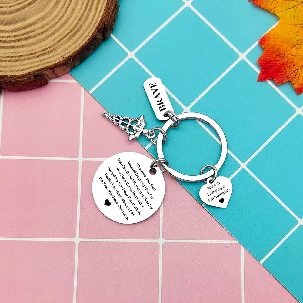 Inspirational Keychain for Friends Coworkers who as a Speech Therapist/SLP-- Every time she/he looks at this and it will inspire her to go on.