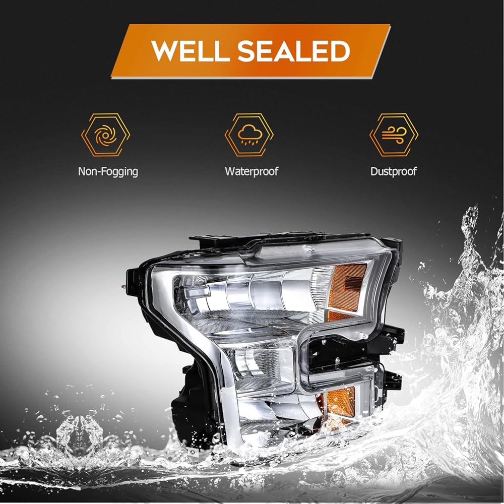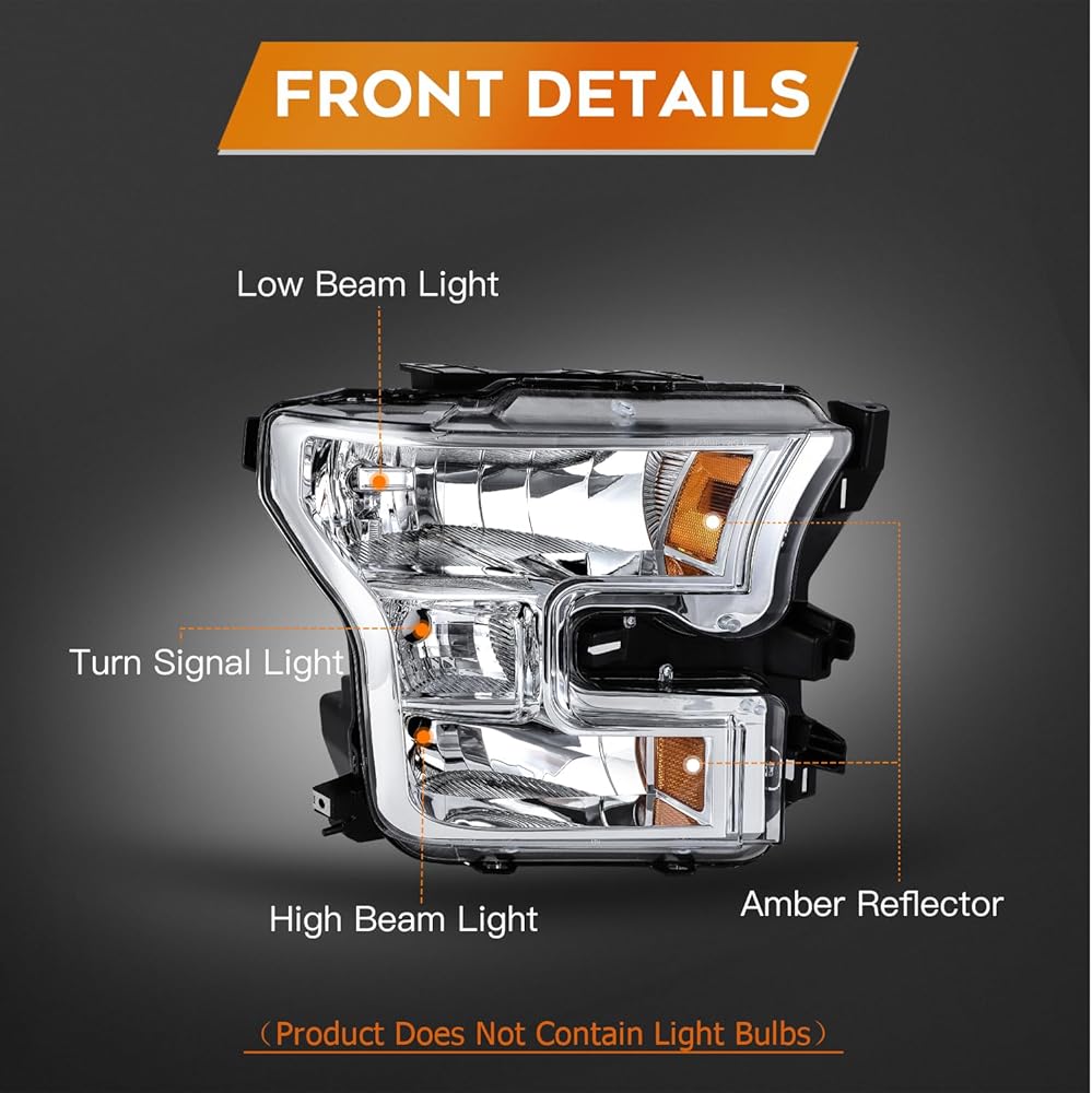 【تحقق من الملاءمة】-مجموعة مصابيح أمامية لسيارة Ford For F-150 2-Door 2015 2016 2017، لسيارة Ford For F-150 4-Door 2015 2016 2017