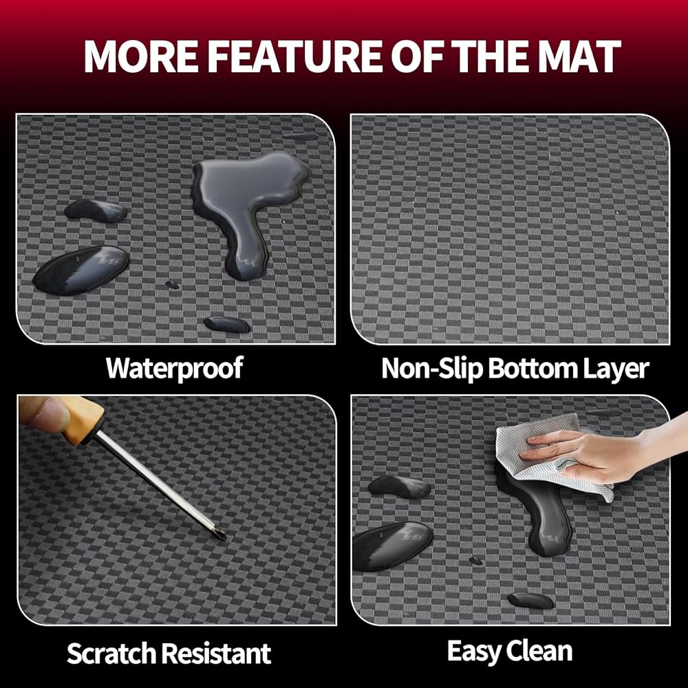 【مادة متينة】سجادة الحمولة مصنوعة من مادة جلد البولي يوريثان عالية الجودة وغير سامة وعديمة الرائحة، صديقة للبيئة، عديمة الرائحة، مقاومة للاهتراء، مقاومة للأوساخ، وسهلة التنظيف، تضمن لك الأمان حتى في الطقس الحار الشديد.