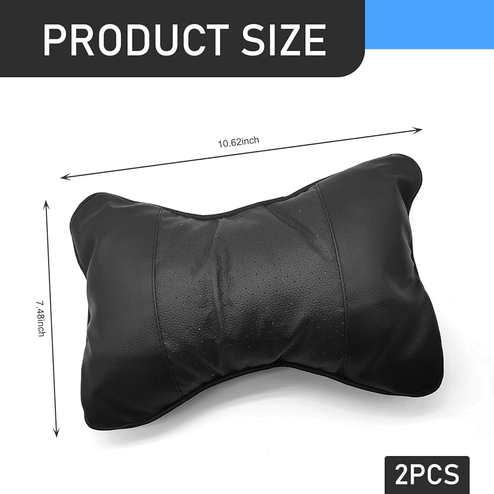 قطعتان من مسند الرأس لدعم رقبة السيارة، 10.62 × 7.48 بوصة ديكور داخلي بنمط العمل من الألياف، وسادة مقعد سيارة جلدية على شكل عظمة للفصول الأربعة، عالمية لمعظم السيارات (أسود)