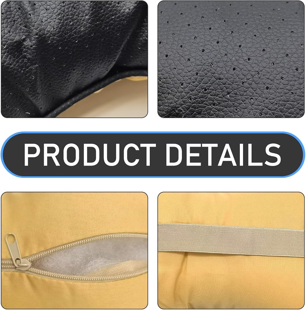 Material: This car headrest is made of high-quality artificial leather on the outside and filled with high-quality fiber on the inside. It feels very soft and comfortable, has good waterproof performance and is easy to clean. There are small holes on the headrest, so it is breathable.