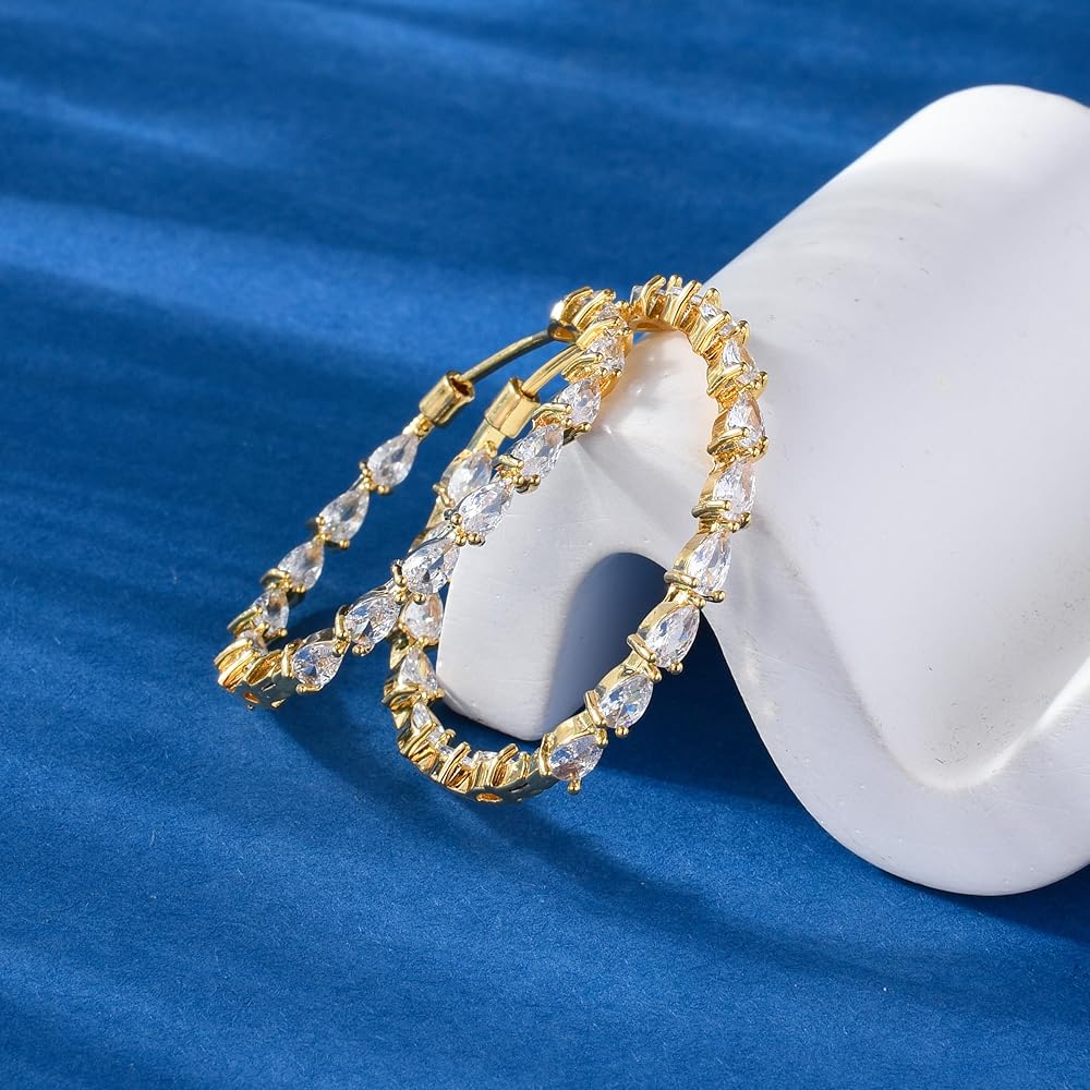 【كريستال لامع】- أقراط دائرية مذهلة مطلية بالذهب عيار 14 قيراط مزينة بـ 34 قطعة كريستال نمساوية صغيرة مبهرة على شكل دمعة، ترمز إلى المشاعر والنمو. تصميم إغلاق بمفصلات بدون خياطة مريح للغاية وسهل وآمن في الارتداء، مما يوفر تجربة ارتداء مريحة. فريدة من نوعها قطر الأقراط الحلقية: 40 ملم.