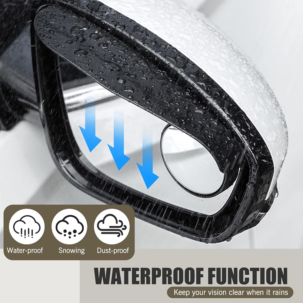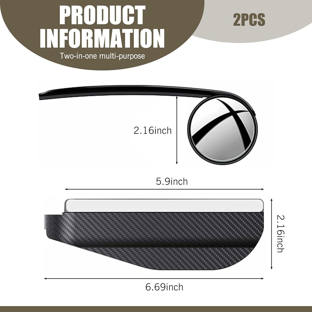 Product Details: You will receive 2 x 2-in-1 rear view blind spot mirror rain eyebrow. The rain eyebrow measures 6.69" x 2.16", the small round mirror is 2.16" in diameter, and the adhesive tape length is 5.9". Slim design does not affect the folding of side view mirrors. Suitable for most car rearview mirror accessories, two-in-one design, one step, no need to buy separately.