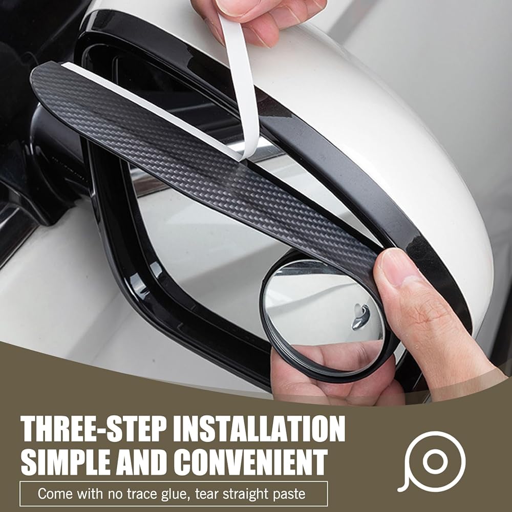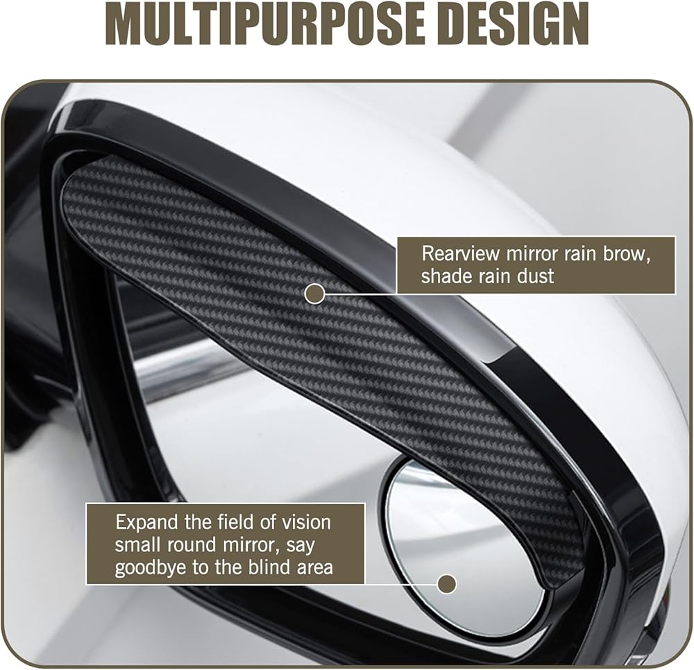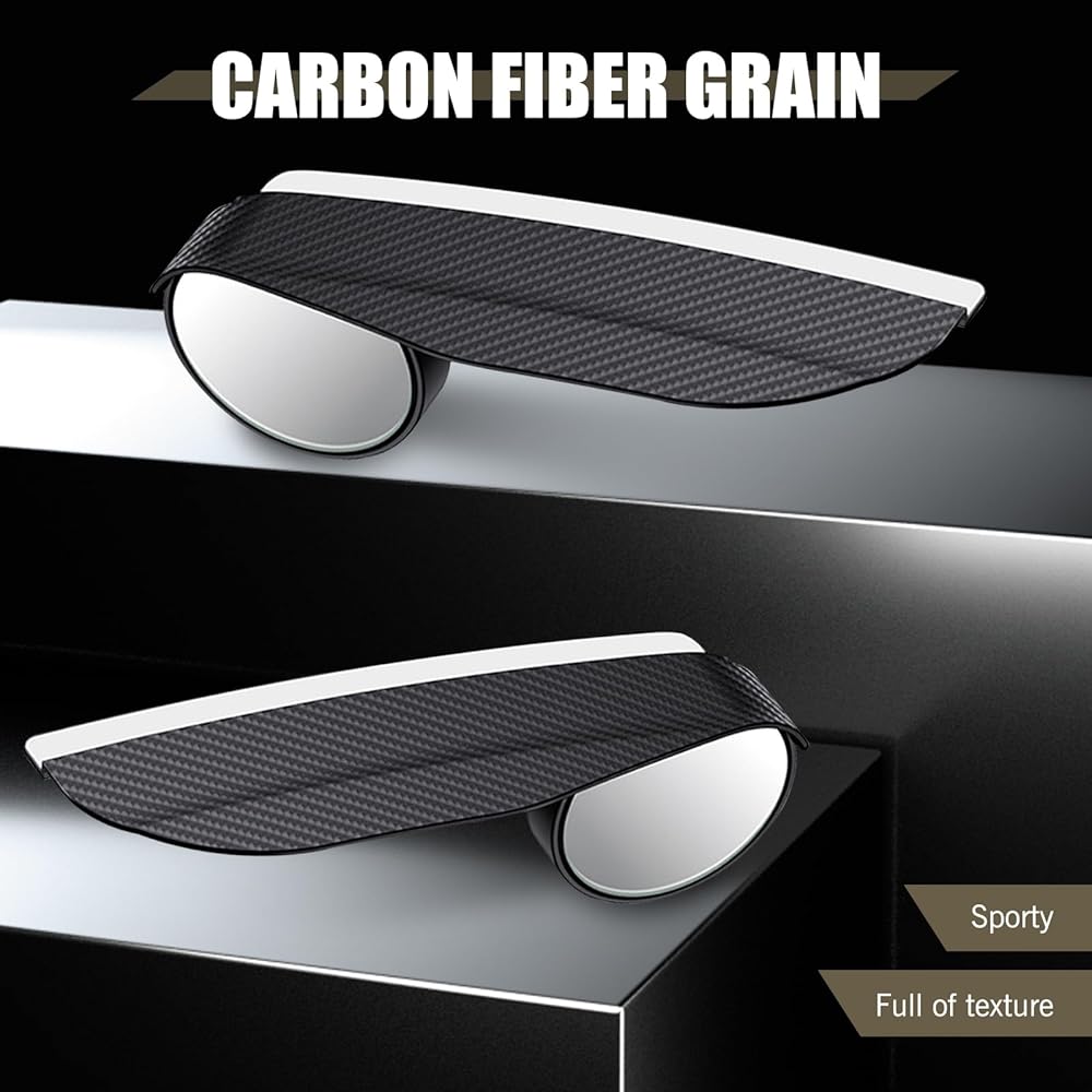 مرآة الرؤية الخلفية العمياء Pack-2 للسيارة + حاجب المطر، مرآة رؤية خلفية ممتدة قابلة للتعديل من ألياف الكربون 360 درجة، لوحة تحويل مياه الأمطار، عالمية للسيارات (أسود)