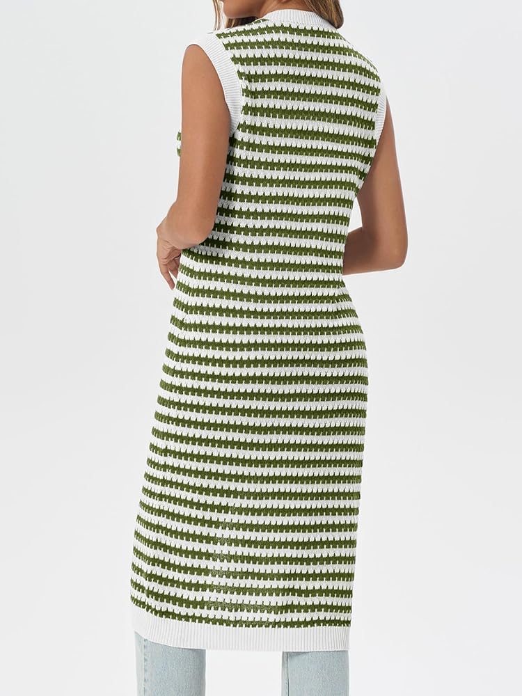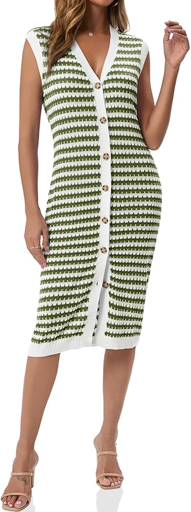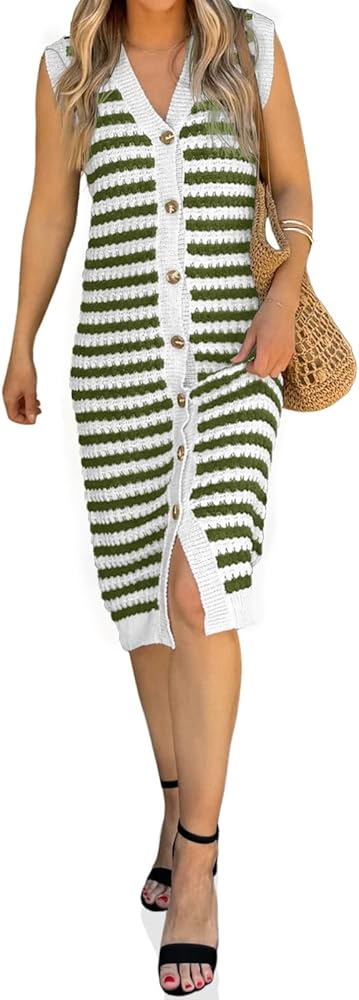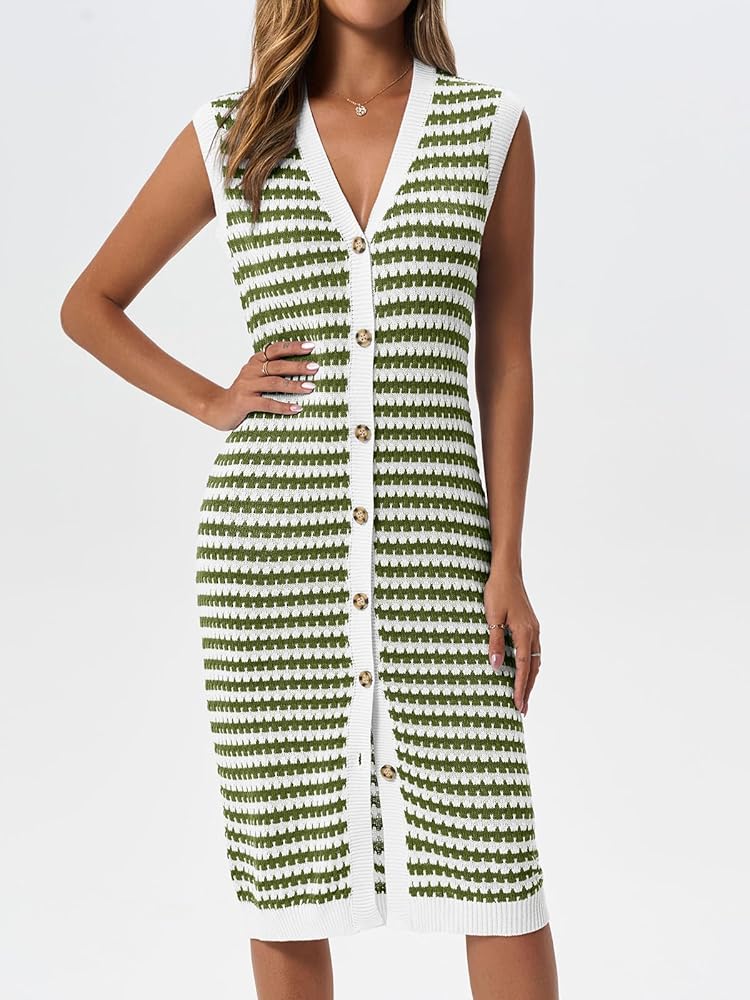 المميزات- فستان مخطط محبوك يتميز برقبة على شكل حرف V، ونمط مخطط، وأزرار إغلاق مفتوحة، وأكمام، وطول متوسط يكمل تصميم هذا الفستان الصيفي. ويقدم فستان حفلة الشاي أجواء مريحة ومريحة في هذا الموسم