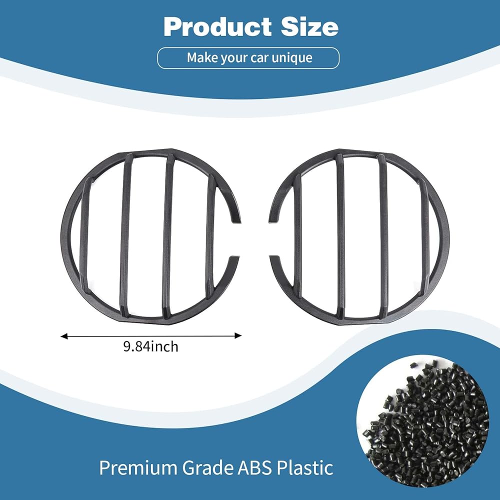 【HIGH-QUALITY MATERIALS】Made of high quality ABS plastic material, durable and not easy to break. Super strong double-sided tape, not easy to peel off, As a good accessory to give your car head light rugged off-road style and protect front head light.